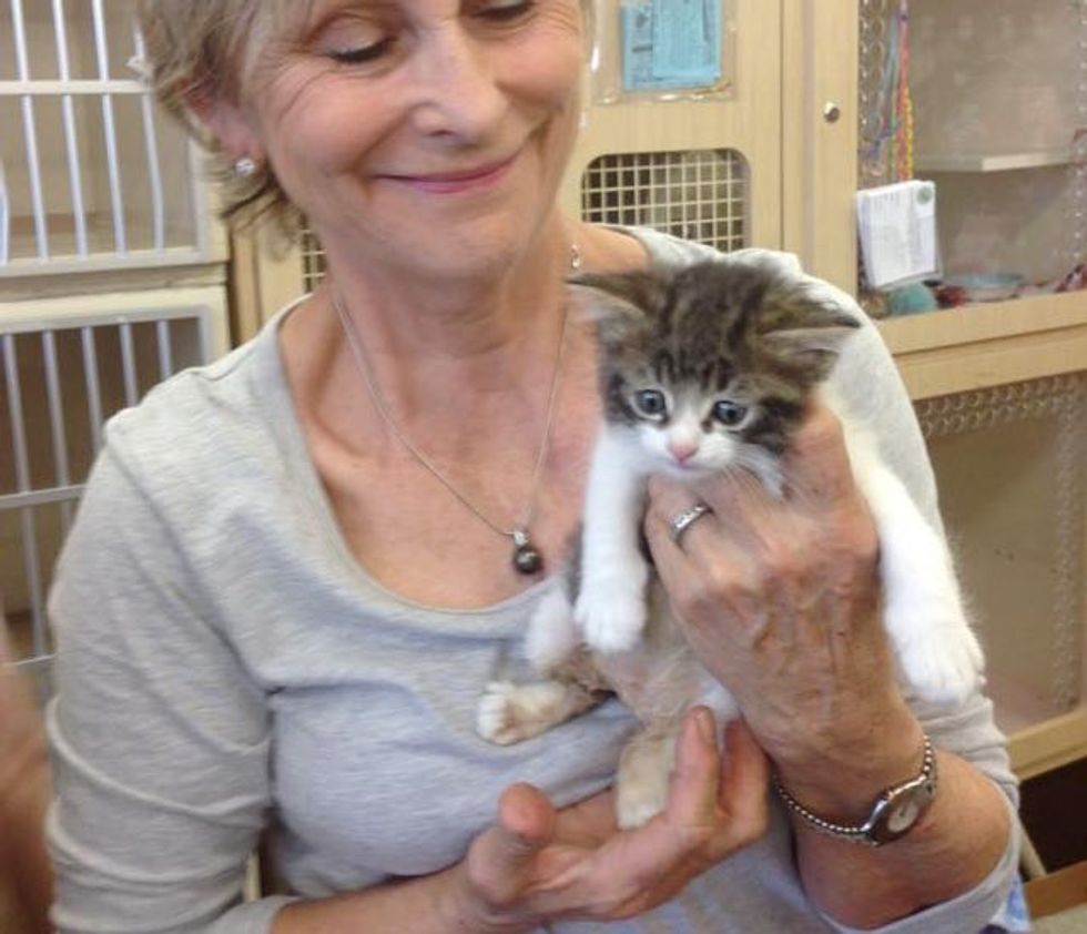 Cuddling with his new mom, Joanne, who is overjoyed!