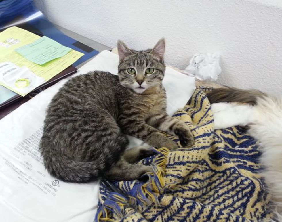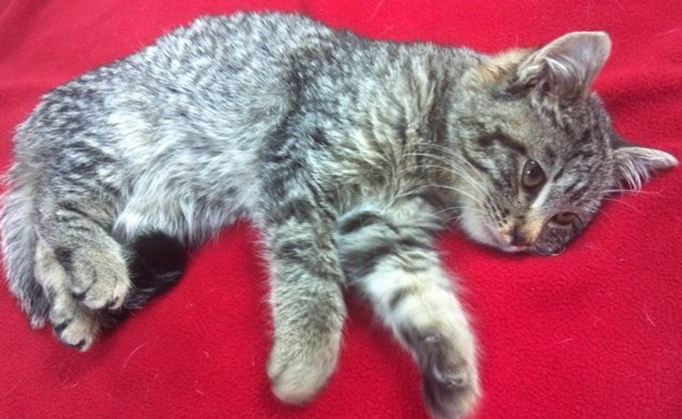 He got bigger and happier at his foster home but was still about half the size of a normal kitten his age.