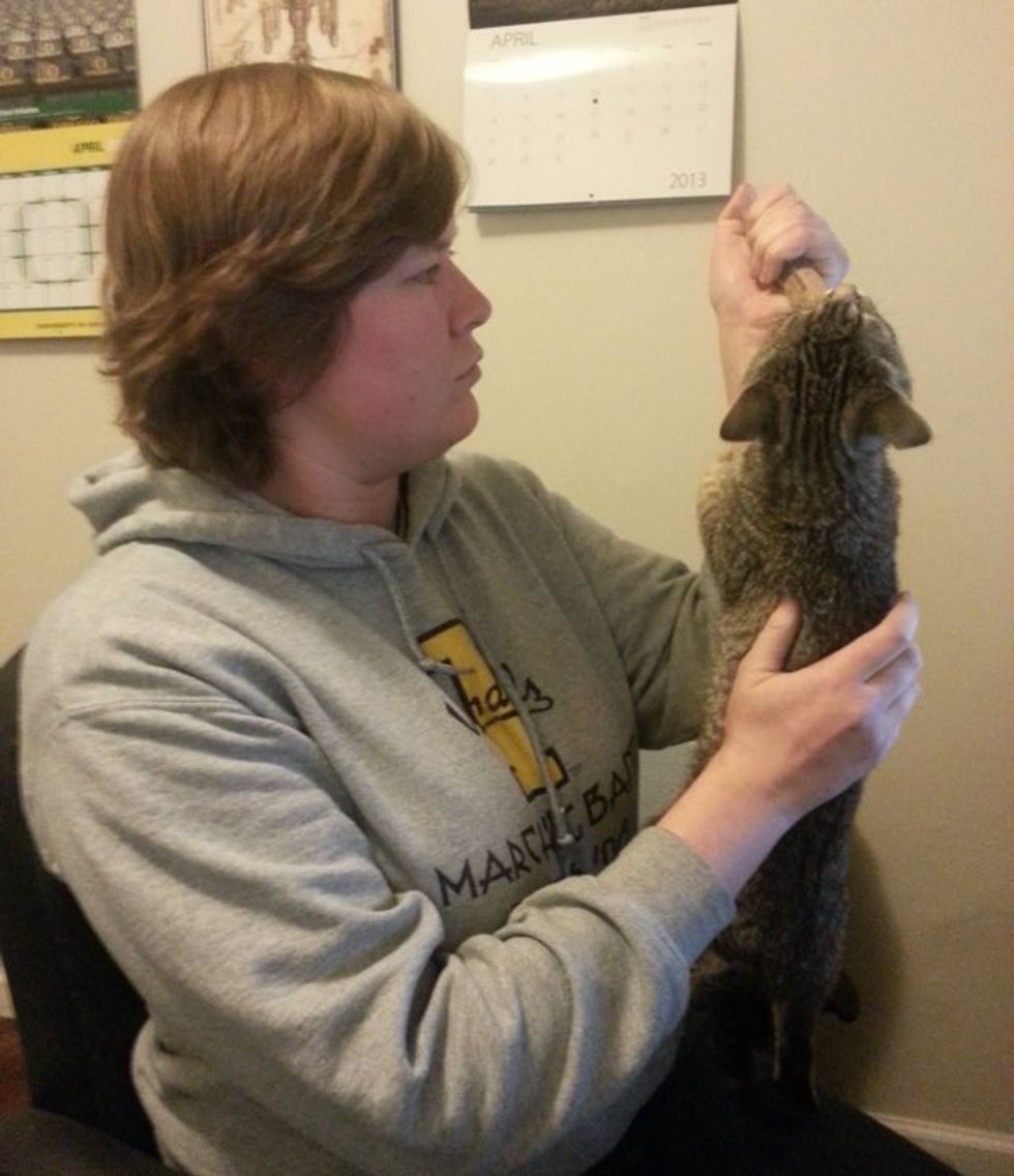 Link's foster mom wrote: "This is how I hold Link while feeding him so gravity can help get his food down."