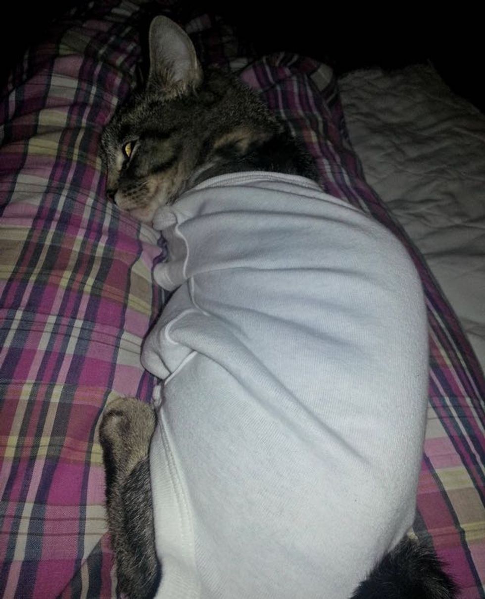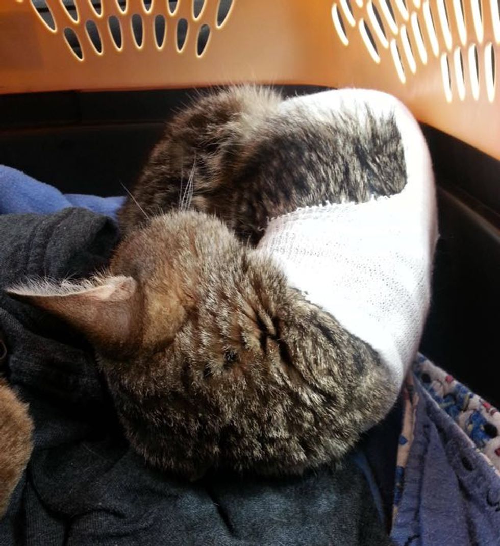 After the surgery, Link curled up for a nap.