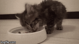 Osamu the kitten has learned to eat like a big kitty and clean up after each meal.