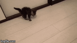 He may be tiny, but he knows how to appear to be larger by puffing up his fluffy coat and arching that little back :).