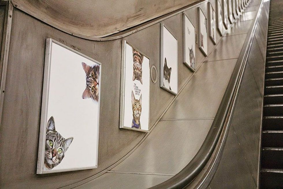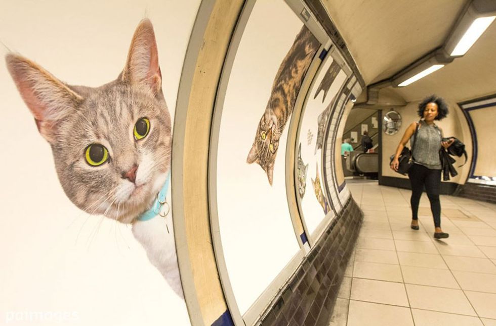 Commuters that travel through Clapham Common station in South London will be greeted by lots of cat pictures for the next two weeks.