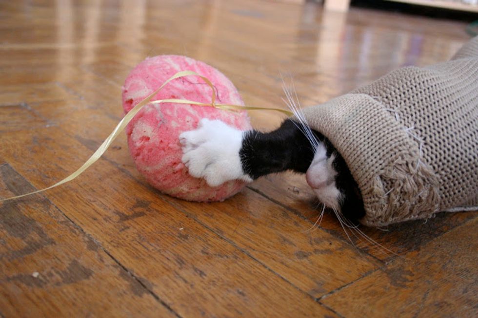 This is Radesh, a frisky little tuxedo kitten who loves sleeves, I mean REALLY LOVE sleeves! He slips into his hooman's sweater and finds the sleeve exceptionally comfortable. To him, it is a great hiding spot where he thinks he is completely hidden and no one can detect him because of his camouflage. If you slide a dangling toy in front of his eyes, he will stick his paw out of the sleeve to try to get it.