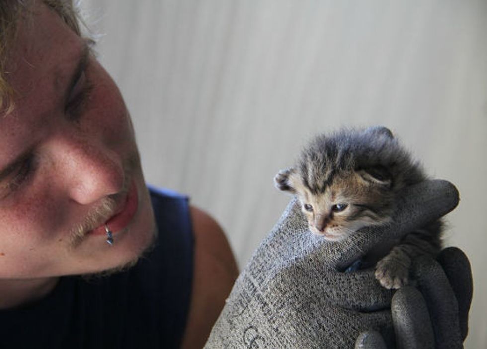 A reddit user reported that workers at a recycling center found three tiny kittens from a cardboard box. "Employees at a recycling center were sorting through cardboard on its way to the crusher, one guy opened a box to find 3 of these inside," he wrote on reddit.