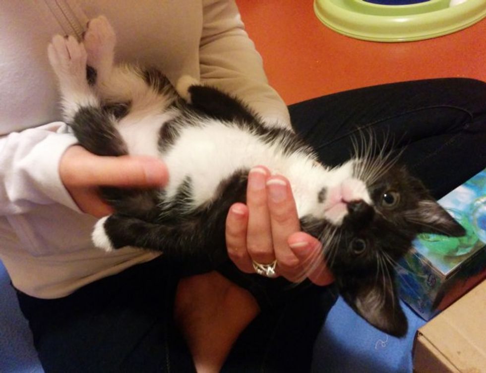 "The kittens and their momma were left at a local pet store. A kind man named Bob brought the family home to care for, but then when the kittens were about 5 weeks old their momma cat became ill and stopped nursing the babies. Since VOKRA has so many excellent bottle feeders, the kittens came to us to be bottle fed! They quickly put on weight, developing the cutest little tummies. Once they were feeling better, they started exploring their new digs and haven't looked back since," she added.