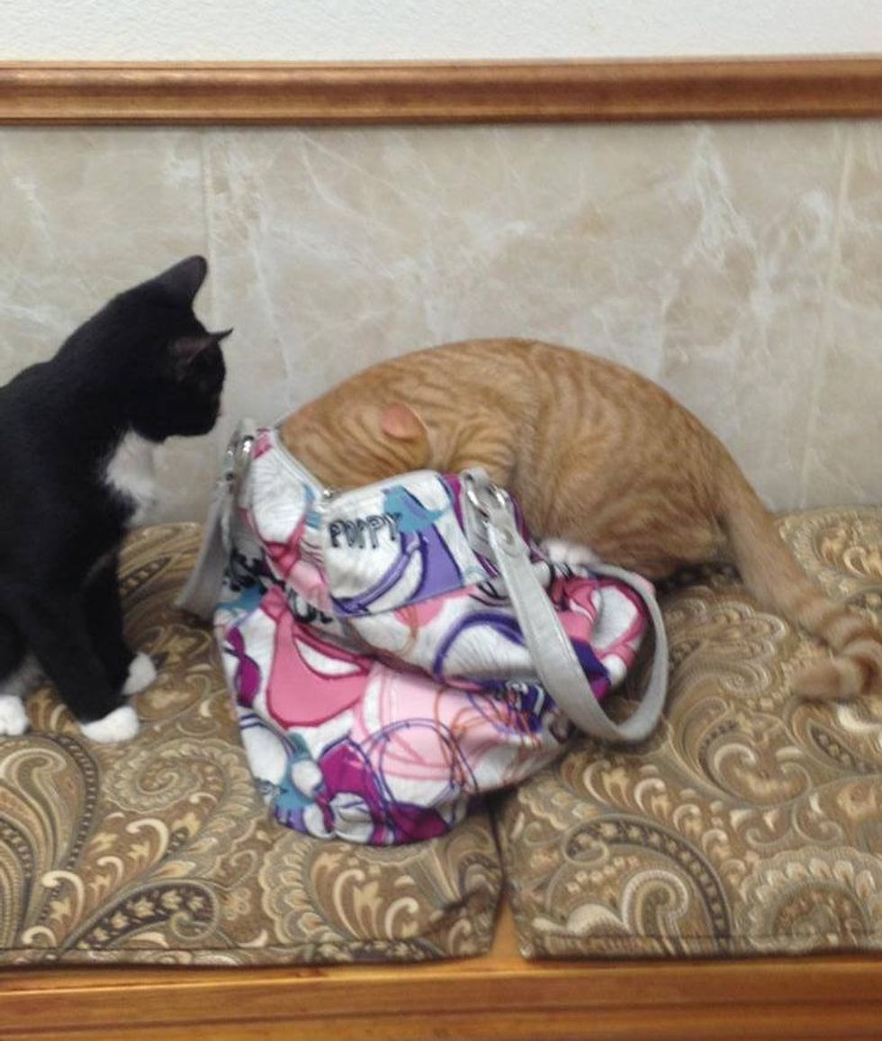 Sometimes they crawl into women's handbags. "Larry occasionally steals things out of purses."