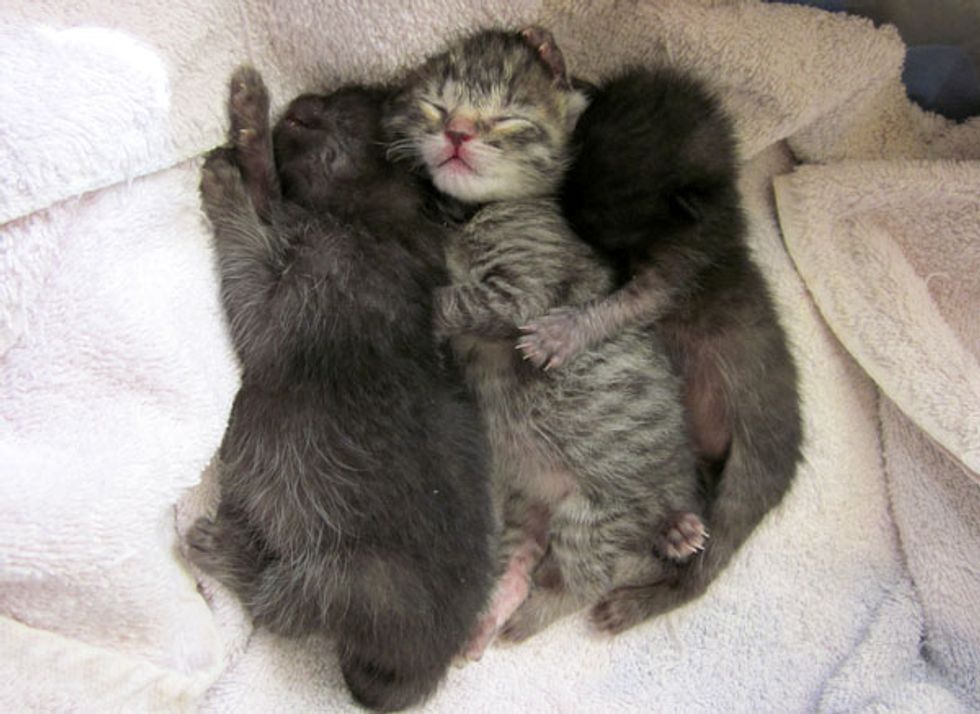 These three little munchkins are some of Kimberly Jennery's many bottle fed kittens. They were found in a paper bag on the side of the road.