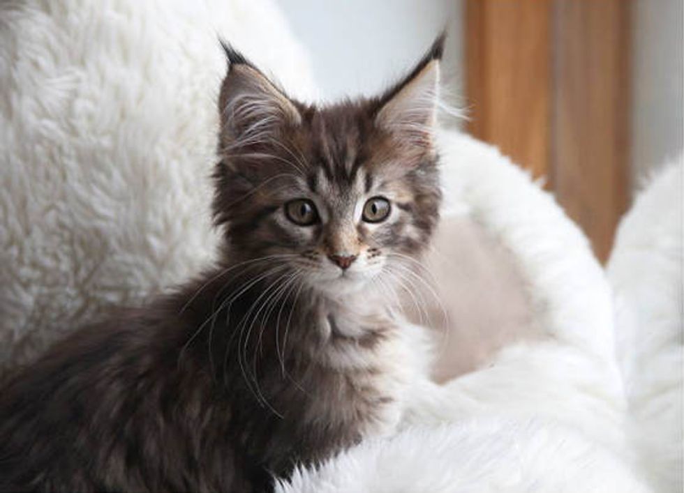 "She has been at Iris's side since she arrived and slept in her arms during her first night here. A true Maine Coon, affectionate, loving and intelligent. It seemed like they were old friends as I watched them on the sofa, the kitten attentively looking at the iPad screen with Iris. She purrs non stop and has long white whiskers and black tips on her ears. We have named her Thula after one of Iris's favourite African lullabies called 'Thula, Thula' meaning Peace and Tranquillity in Zulu."