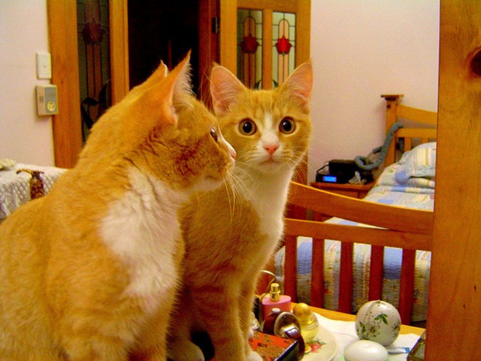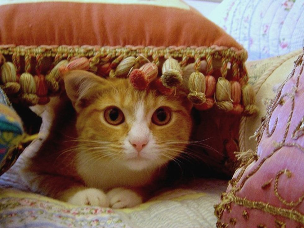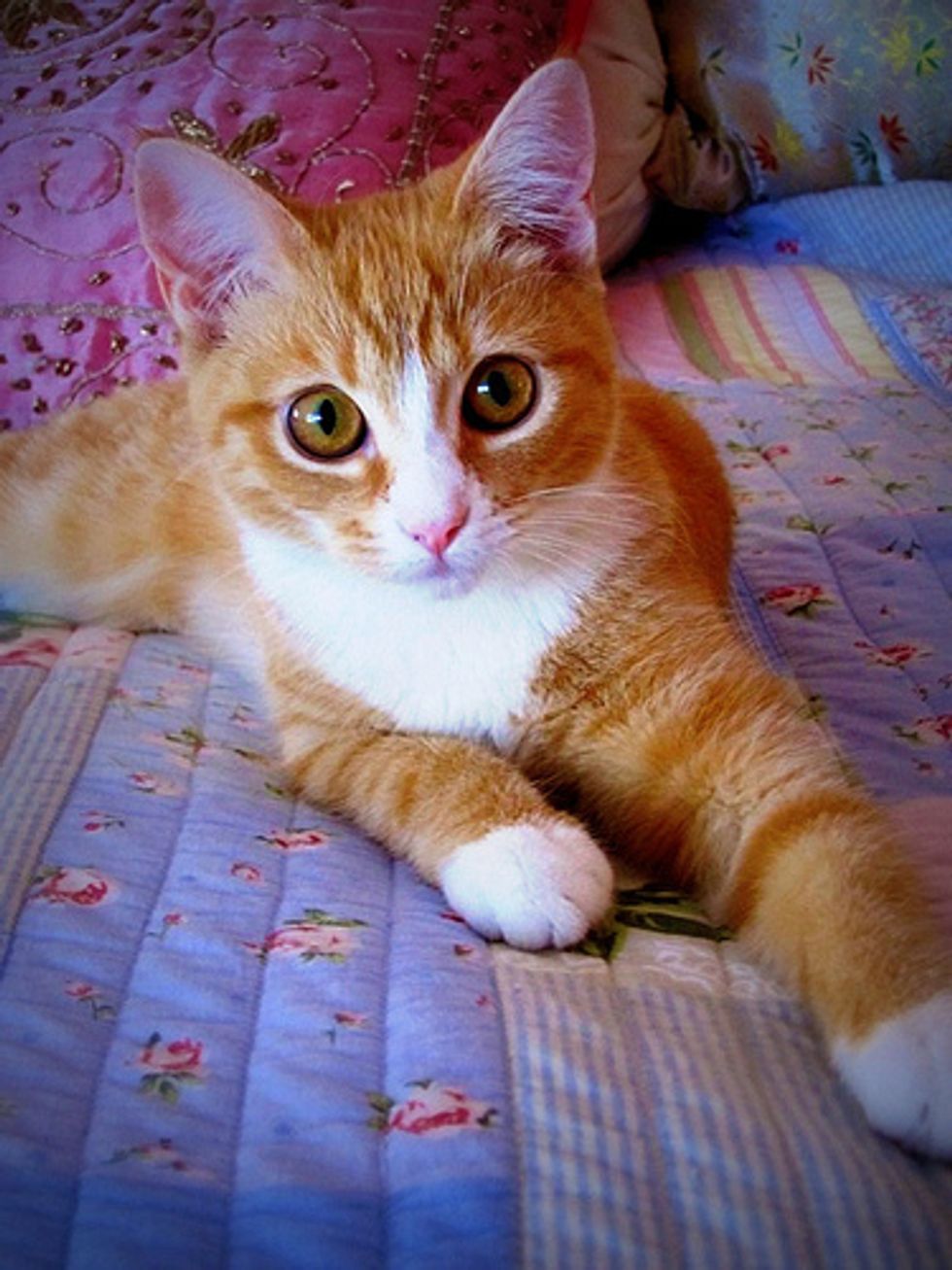 So I headed off to the cat protection society in Greensborough, Melbourne. I wanted to get one as young as I could so it would be less threatening to Coco (a fiery tortie). I looked at all the kitties and whilst I wanted to take them all home I found a little girl kitten and decided to take her home. Driving back home with Tilly in the car, I remembered what my hubby had said to me about not getting a ginger or a white one. OOPS. Tilly was both - ginger AND white!!