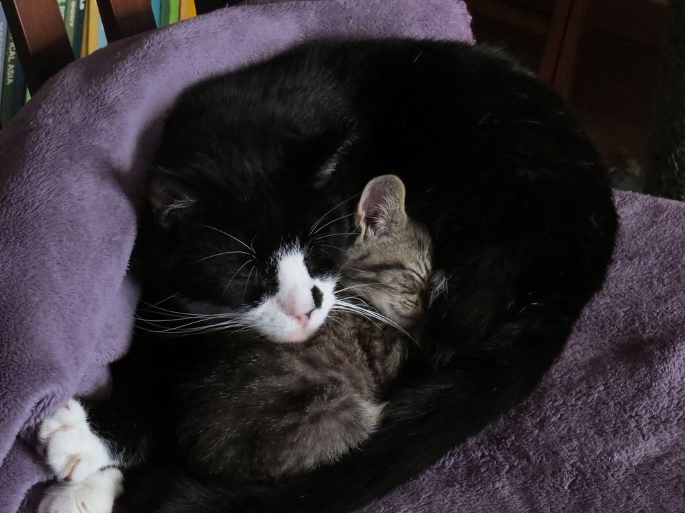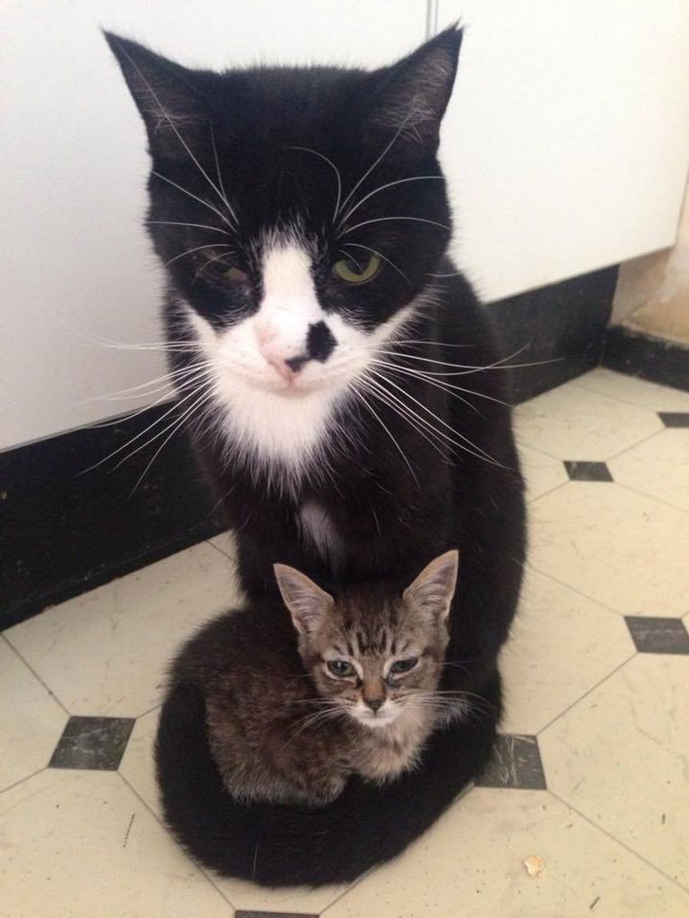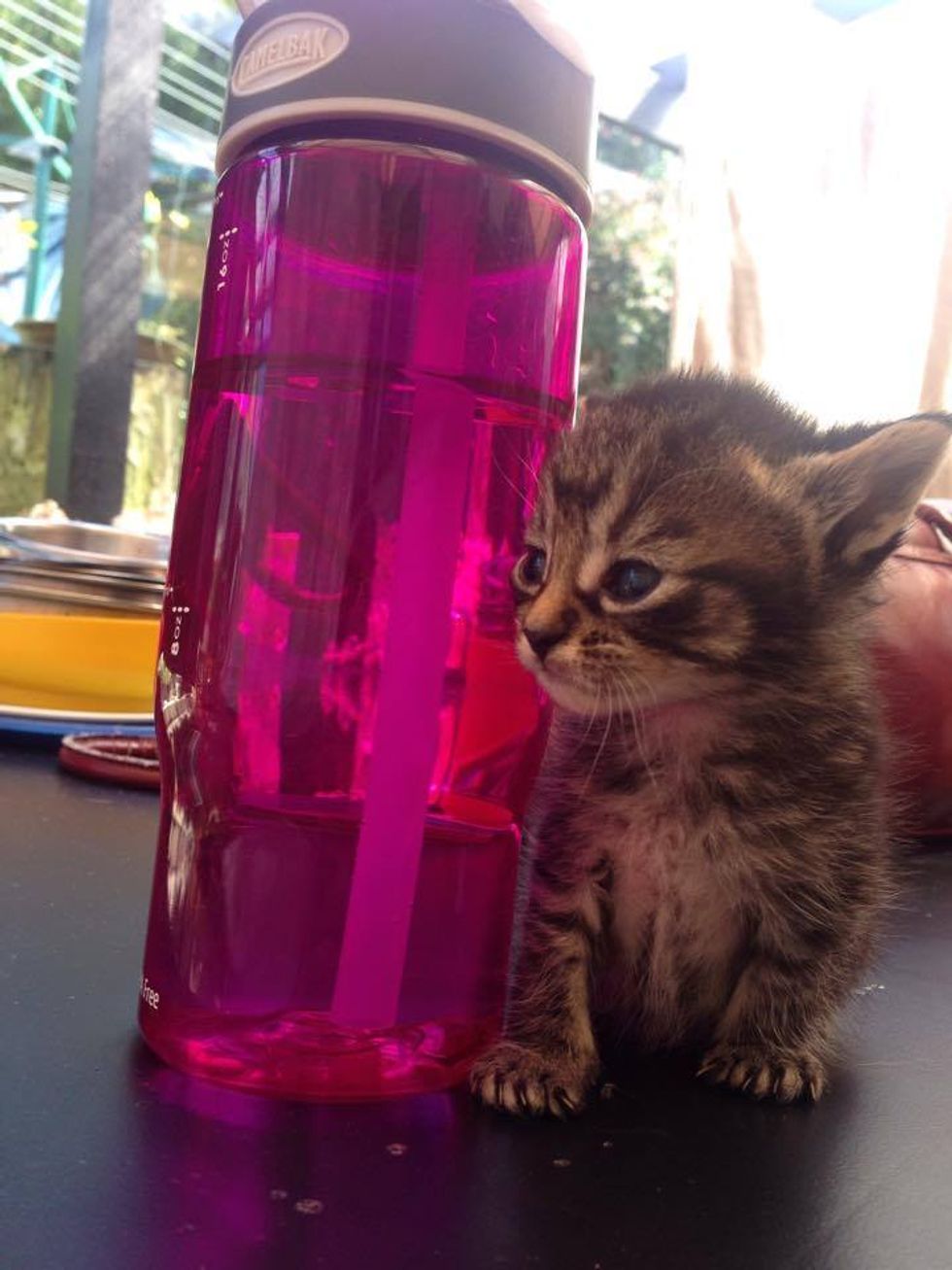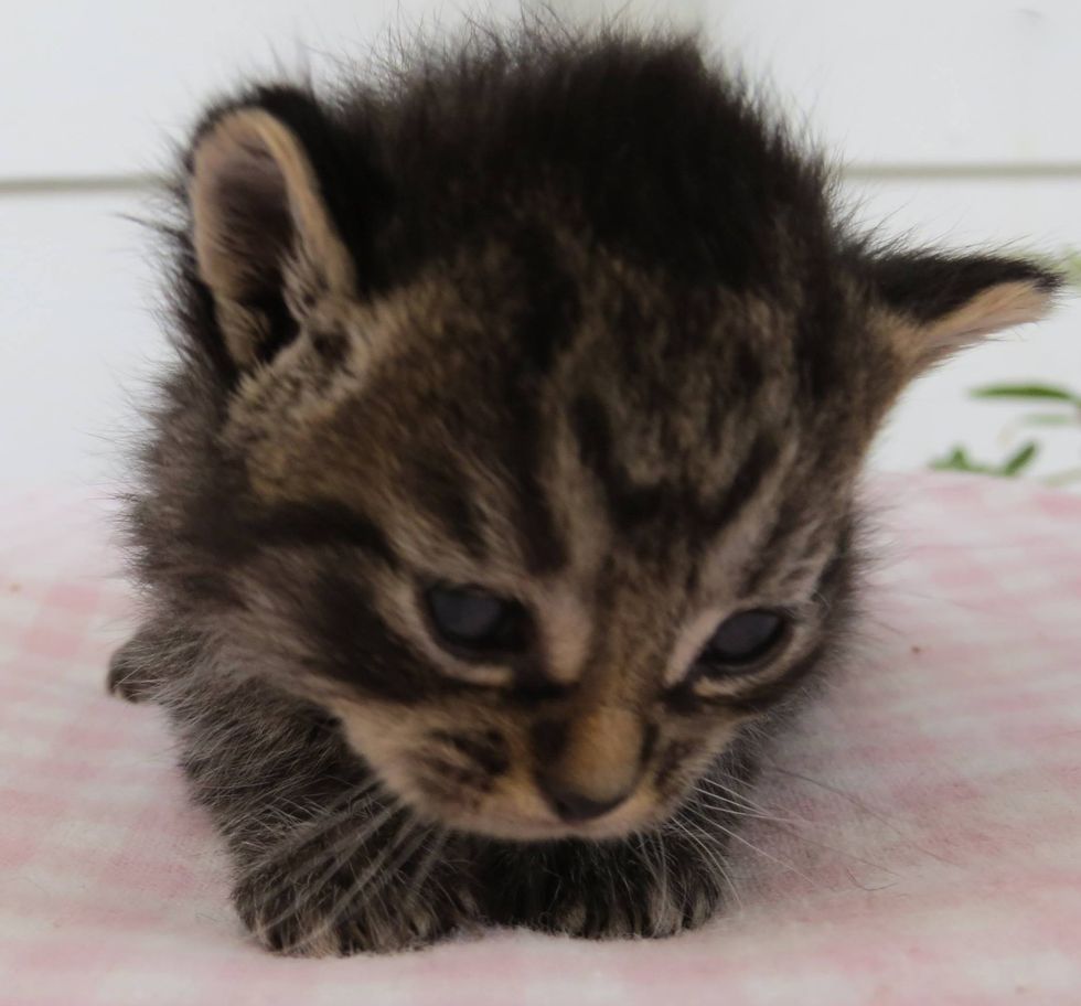 "At first Harley was put with a mumma cat who already had kittens, she was the biggest but as the weeks followed her adopted siblings grew but she did not."