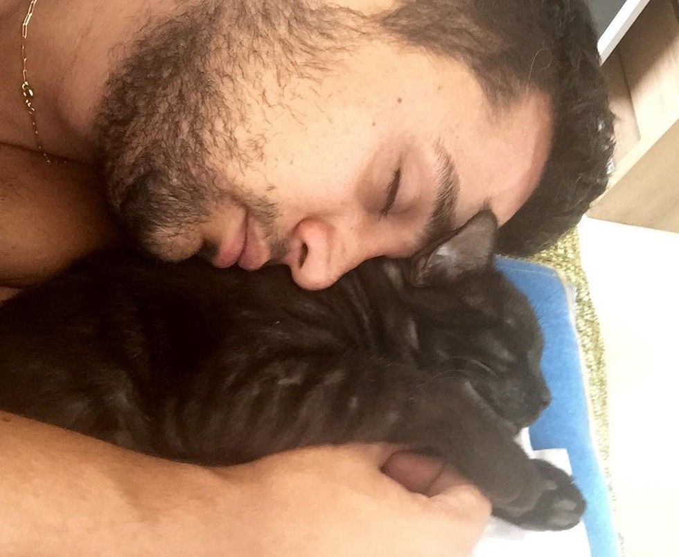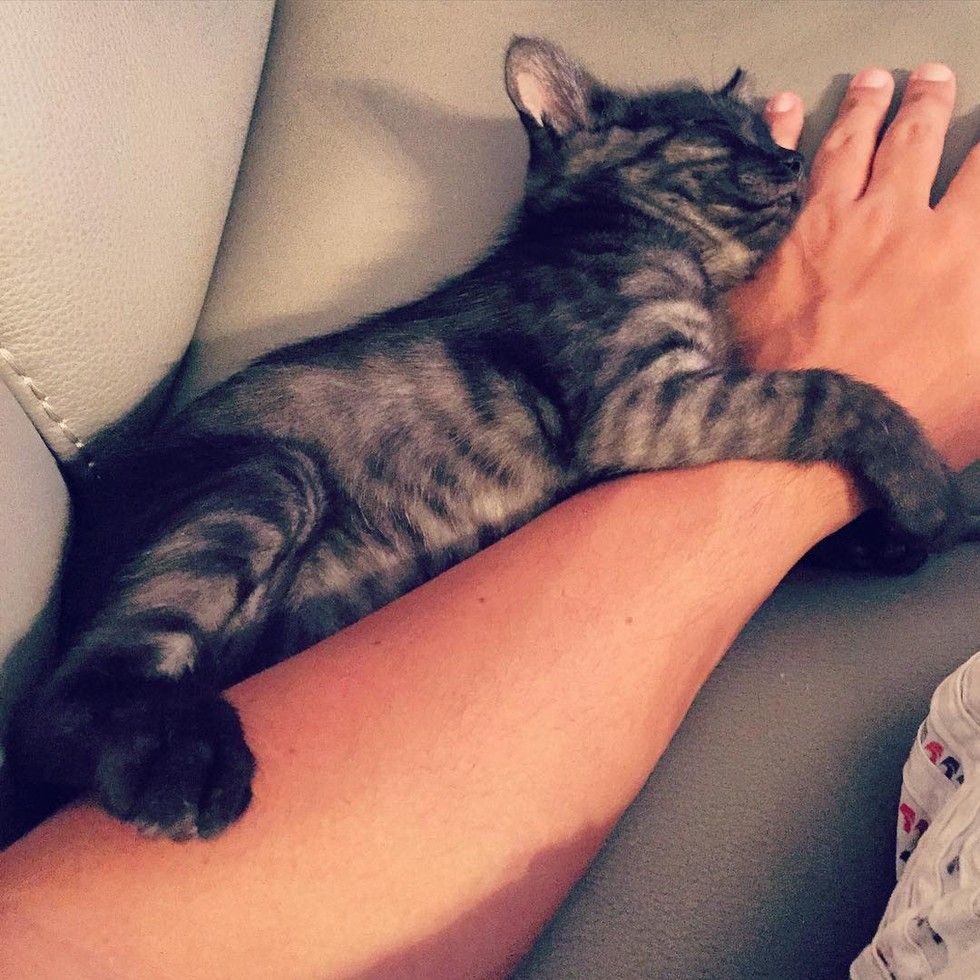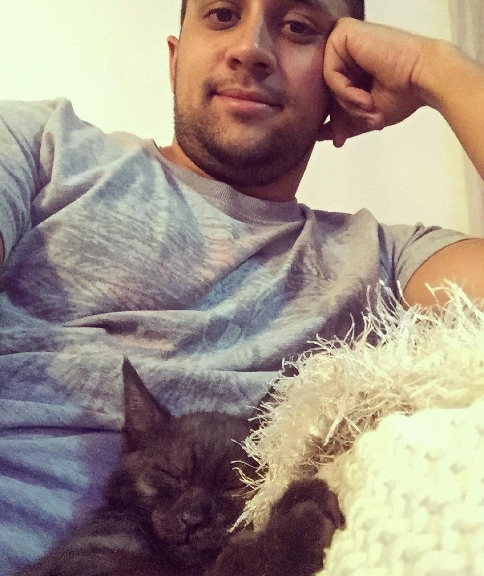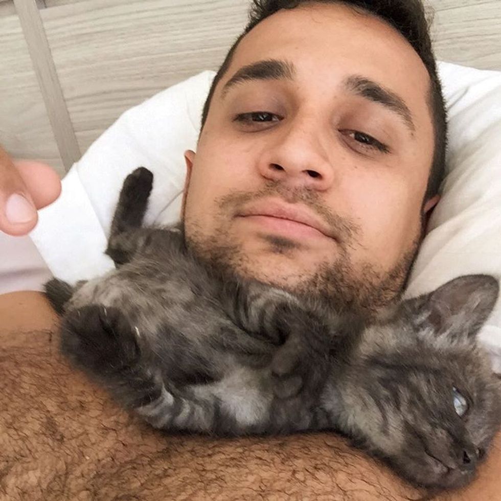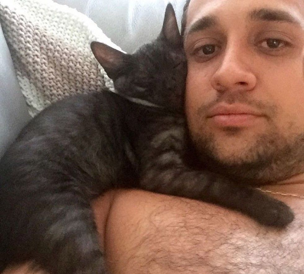Whenever Mattoso is home, Armani curls up in his lap for a nap.