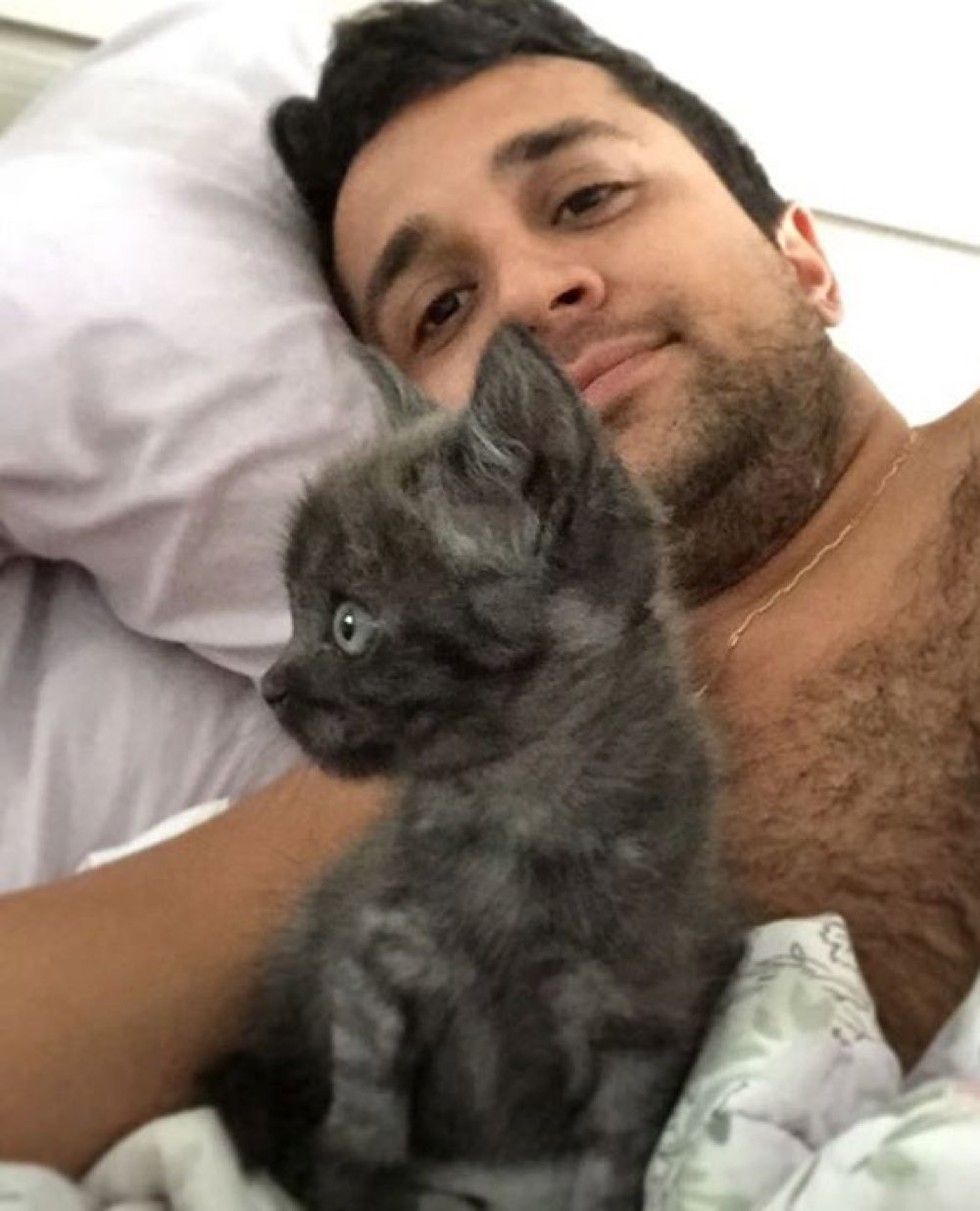 When Armani came into this man's life, he was without one of his hind legs, but the little fur baby adjusted and made do with three just fine.