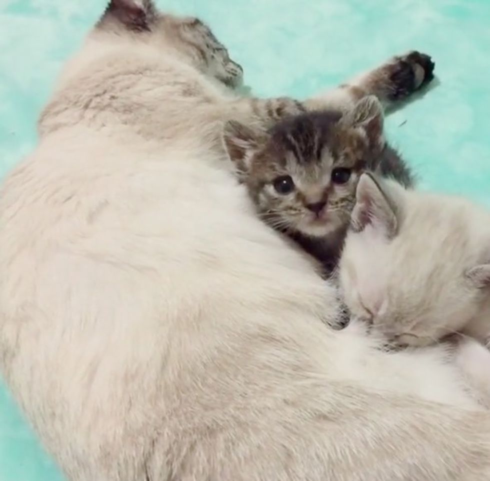 When Madeline the cat and her kittens were taken into the same foster home in Seattle Washington, Cindy the caregiver (@foster_kittens) hoped that the sweet mama would accept the little motherless kitten.
