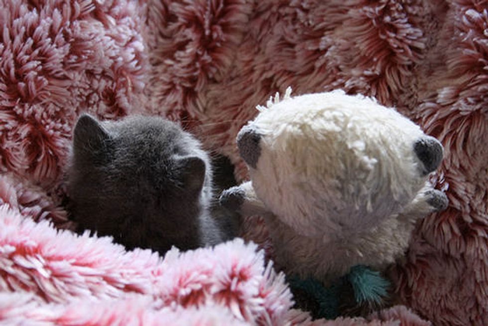Jennifer nursed the little blue boy back to health through many sleepless nights. They were there when he opened his eyes, had his first litter box experience and ventured out of his nest to explore for the first time. They taught him how to play and he discovered how to purr.