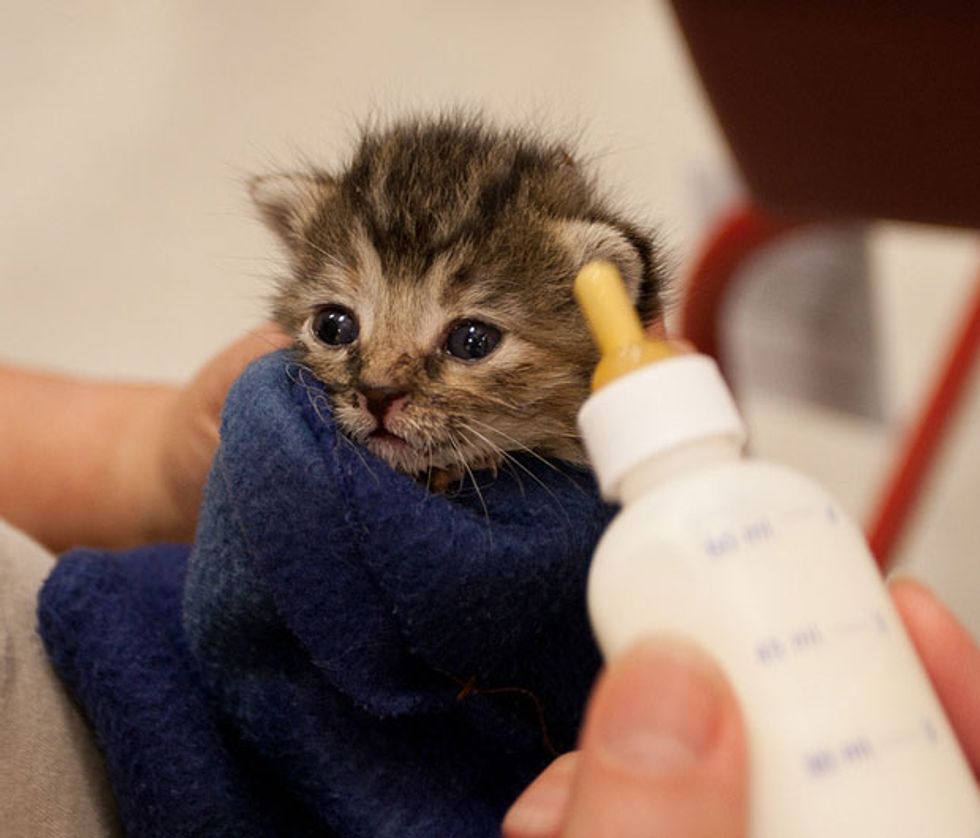 Little bitty rescue baby is chowing down a bottle of yummy goodness.