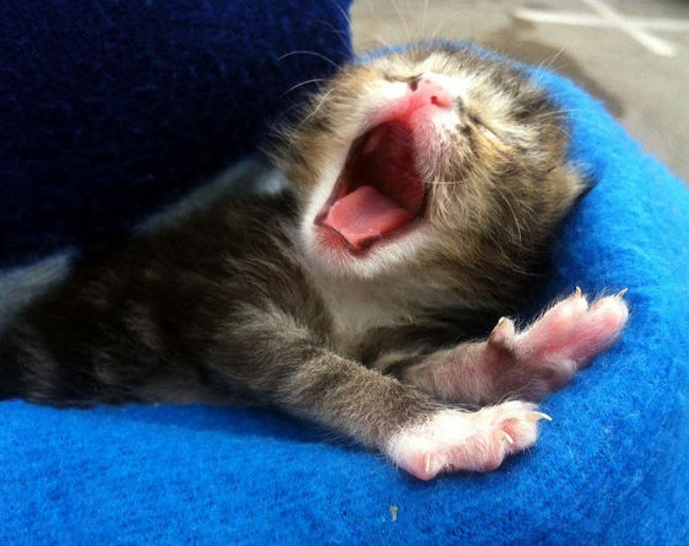 She may be small, but she is quite a talker. When she needs something, she makes sure you hear it. Reddit user Jazellee rescued this tiny furball and has been mothering the kitten every 2 hours since.