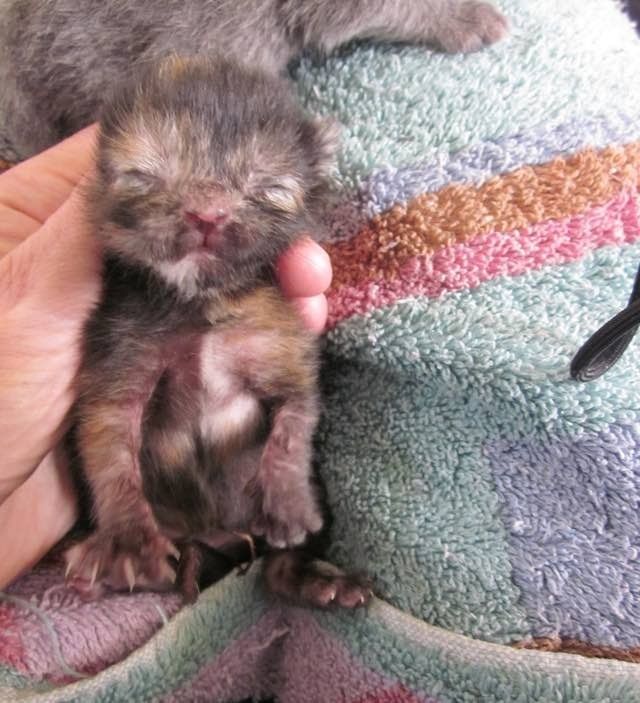 The little orphaned kitten was four or five days old when she came to Jennery. Her littermates didn't make it, but tiny Blaze wasn't willing to go down without a fight. She fought hard and came back from death five times.