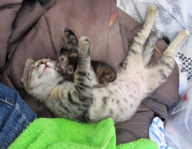 Courtesy of Kimberly JenneryWatch video: It's a cuddle puddle and Blaze gets a bath from another foster kitten :).
