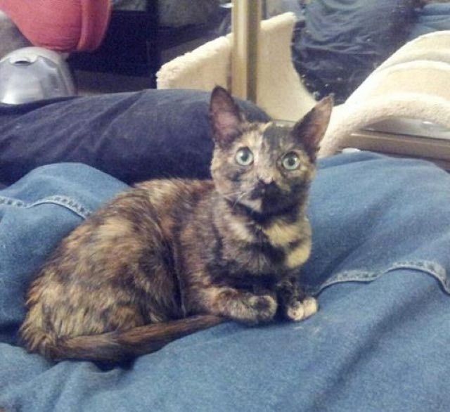 Blaze the little tortie was just half the size of other kitties her age. She fought her way through many battles and was loved by a bunch of rescue kittens she met at her foster home.