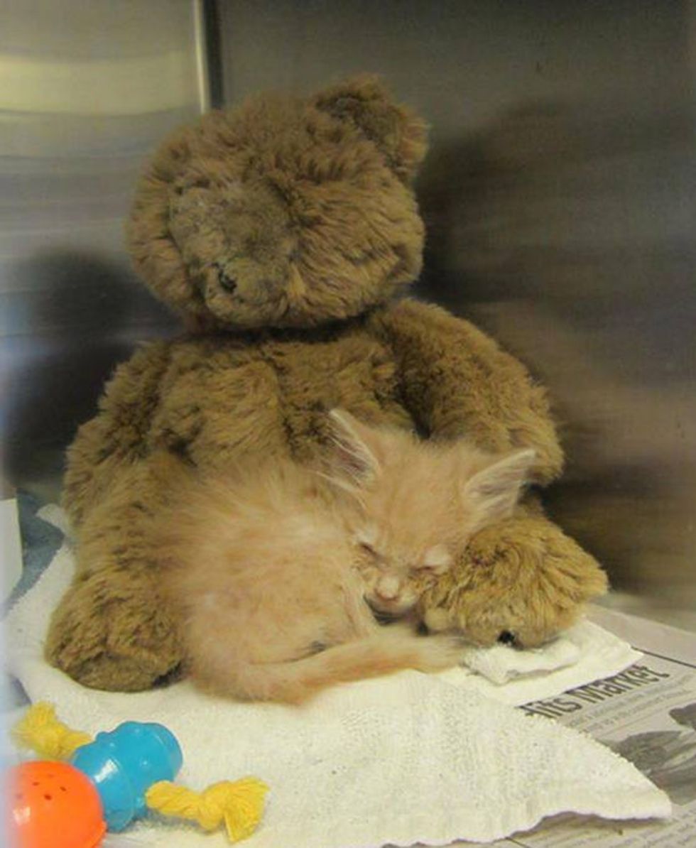 This tiny ginger kitten survived the massive tornado that hit Moore Oklahoma. He is one of the many cats and kittens rescued by Central Oklahoma Humane Society, now waiting to be reunited with his family.