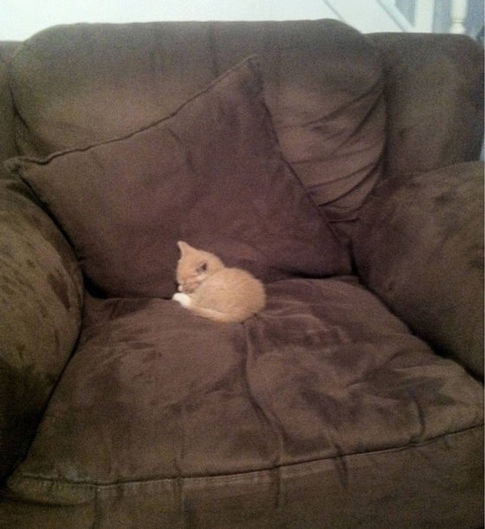 He found a spot for his own at his new home... "Guess this is his chair now," said the human.