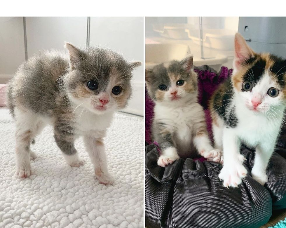 A pint-sized kitten had her dream come true with new sisters after she was found alone outside.