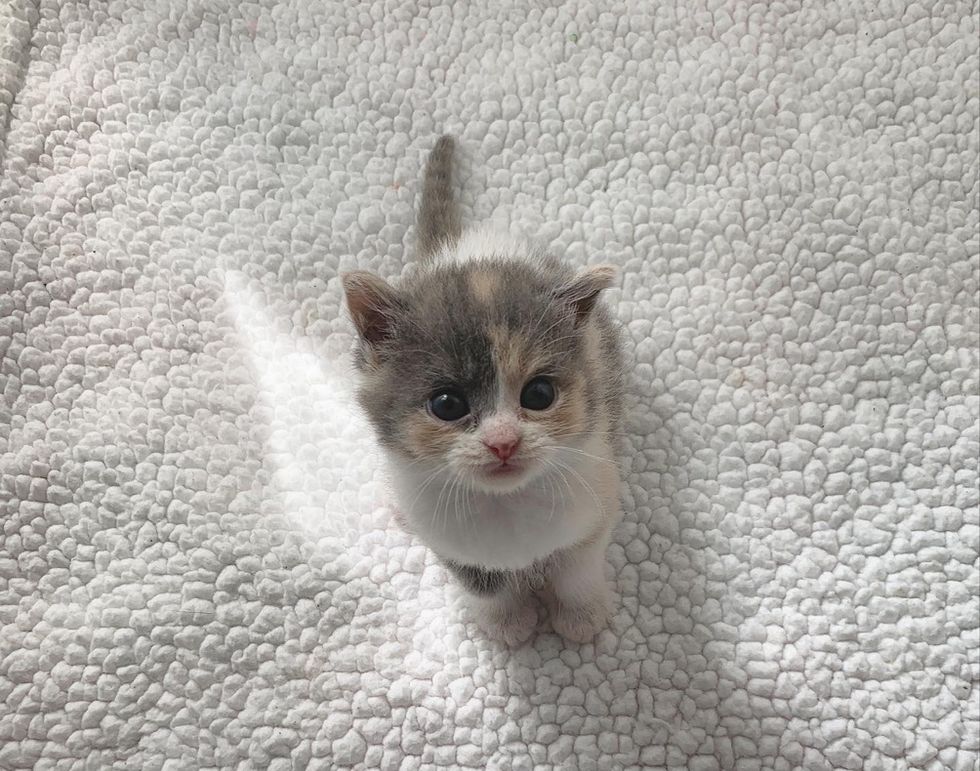 A resident from North Carolina found a tiny cream calico kitten outside his home. The cat mom never returned for her baby after many hours of waiting. The kind person brought her inside and kept her safe and alive overnight. He reached out to his local rescue Sparkle Cat Rescue (in Burlington, North Caroline) as the kitten needed more care than he could provide.