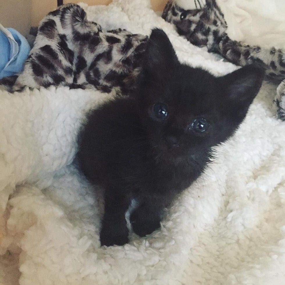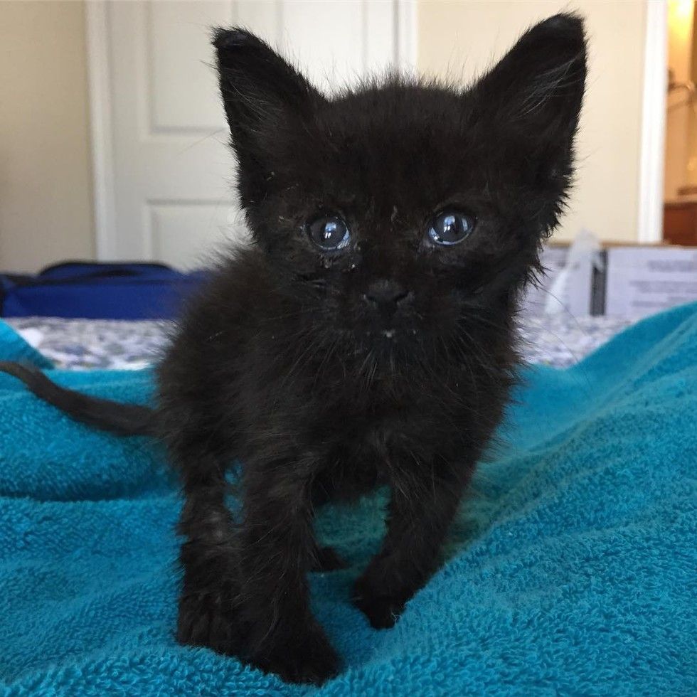 "She is around 4 weeks, but her growth is stunted - hence the big eyes."