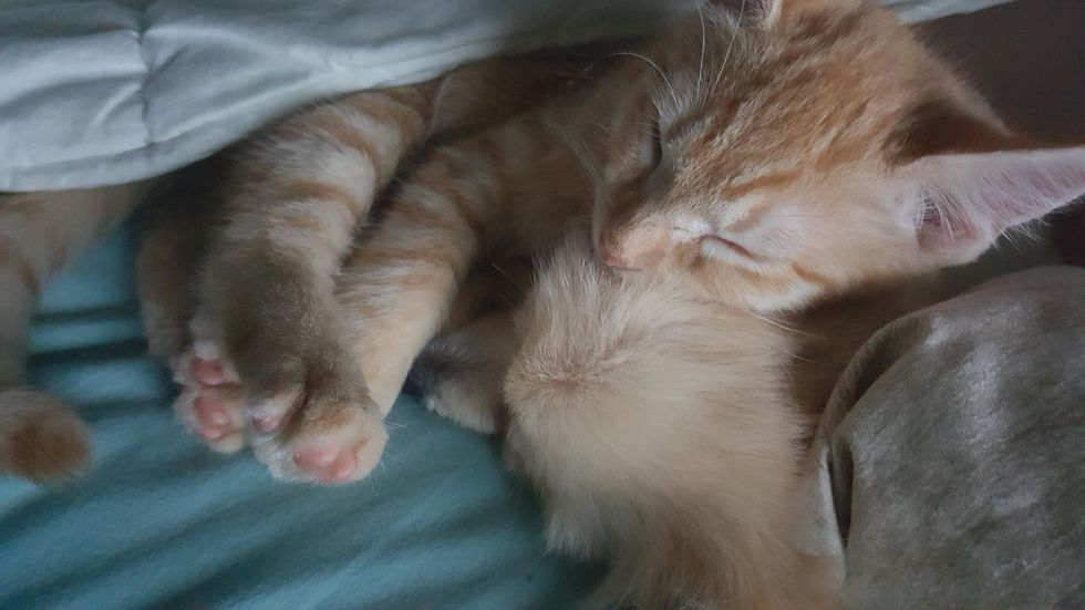 He's the same size as his Okami, who is so proud of his little ginger boy.