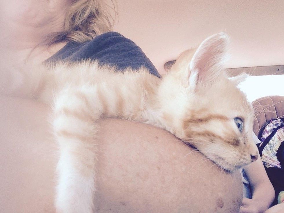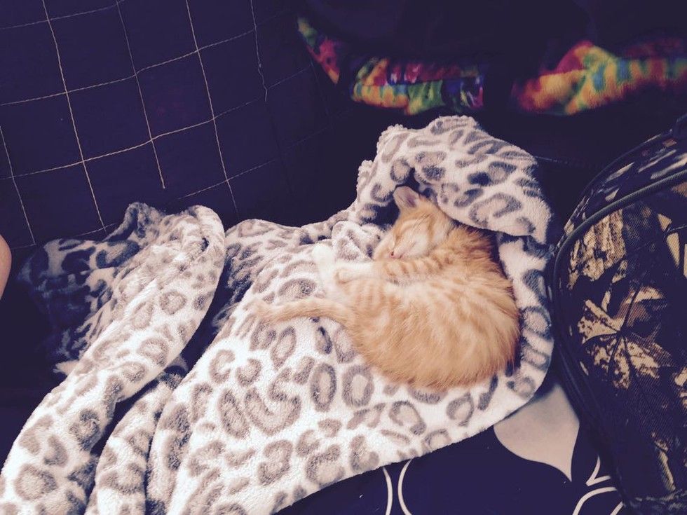 In order to continue caring for the tiny ginger boy, Picek took him with her and her boyfriend when they had to travel out of town, so little Gizzy could get all the attention and love he needed to get better.