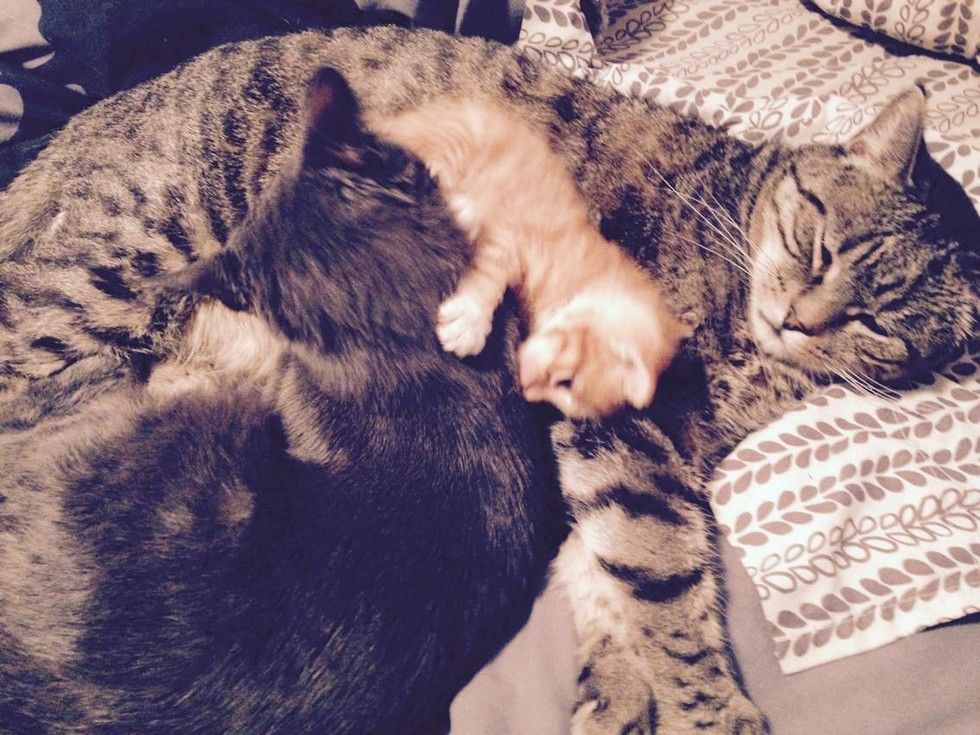 Gizmo playing with the 7-toed gentle giant, Cody the cat, who took on a daddy role and looked after Gizzy.