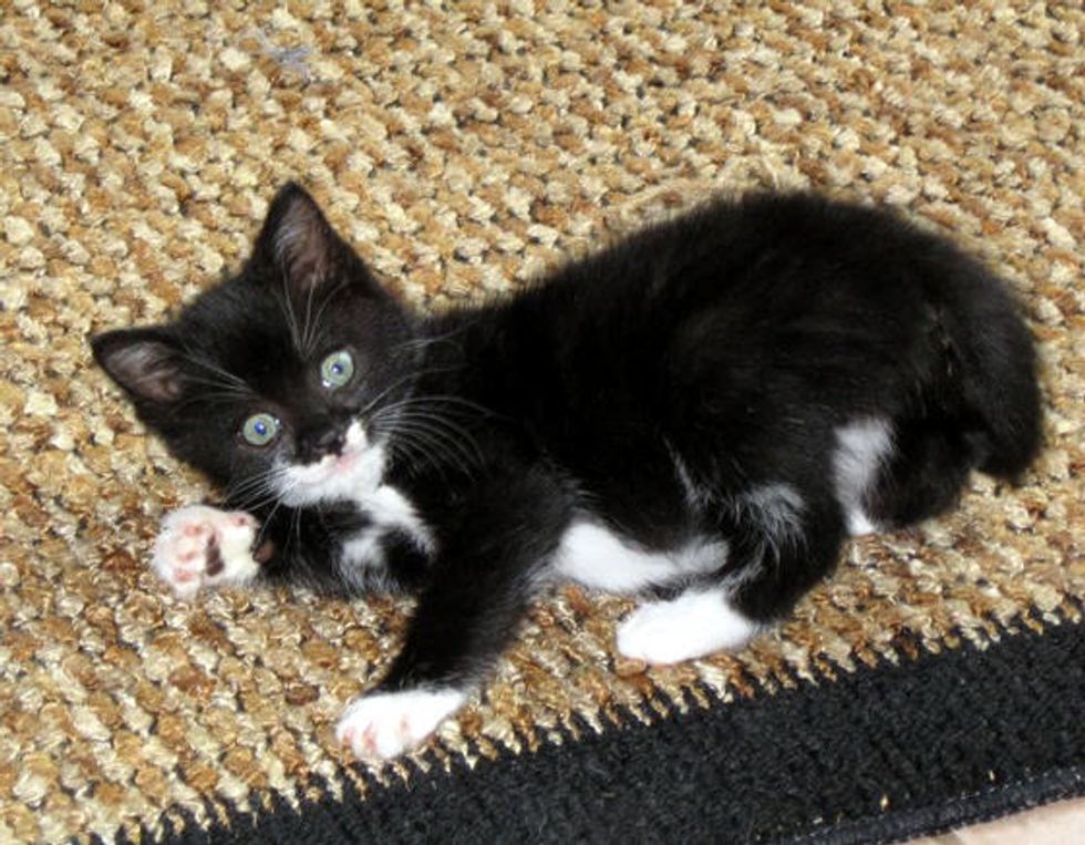 A tiny tuxedo found her way from the dump to a forever home thanks to the workers who rescued her and a loving family that gave her a place to call home.
