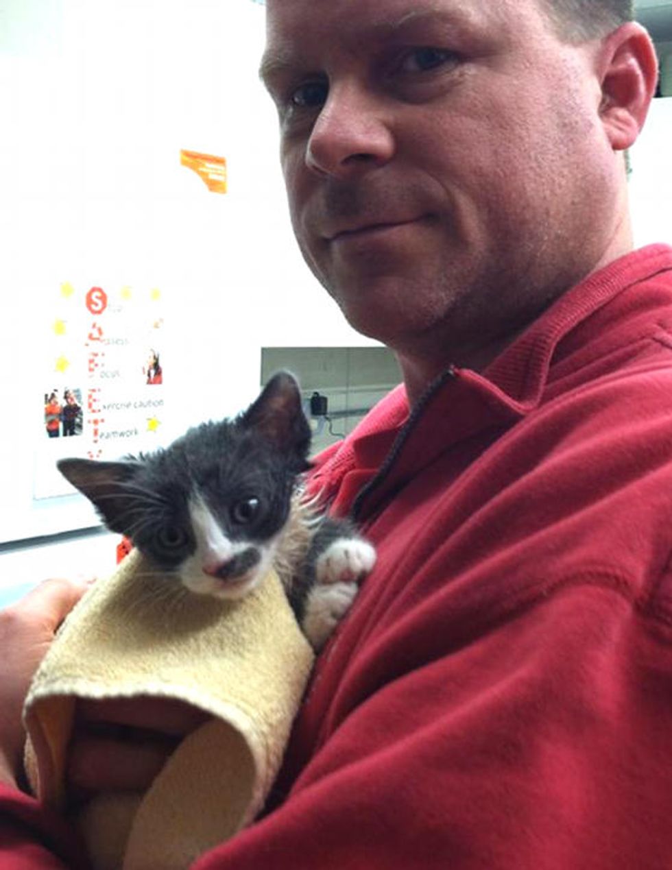 Rescue tech from Animal Rescue League of Boston picked up the kitten and gave her a lot of love and cuddles.