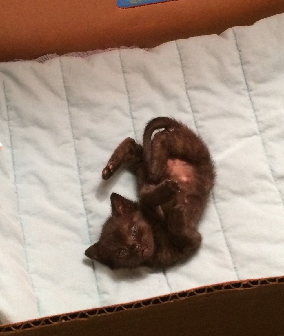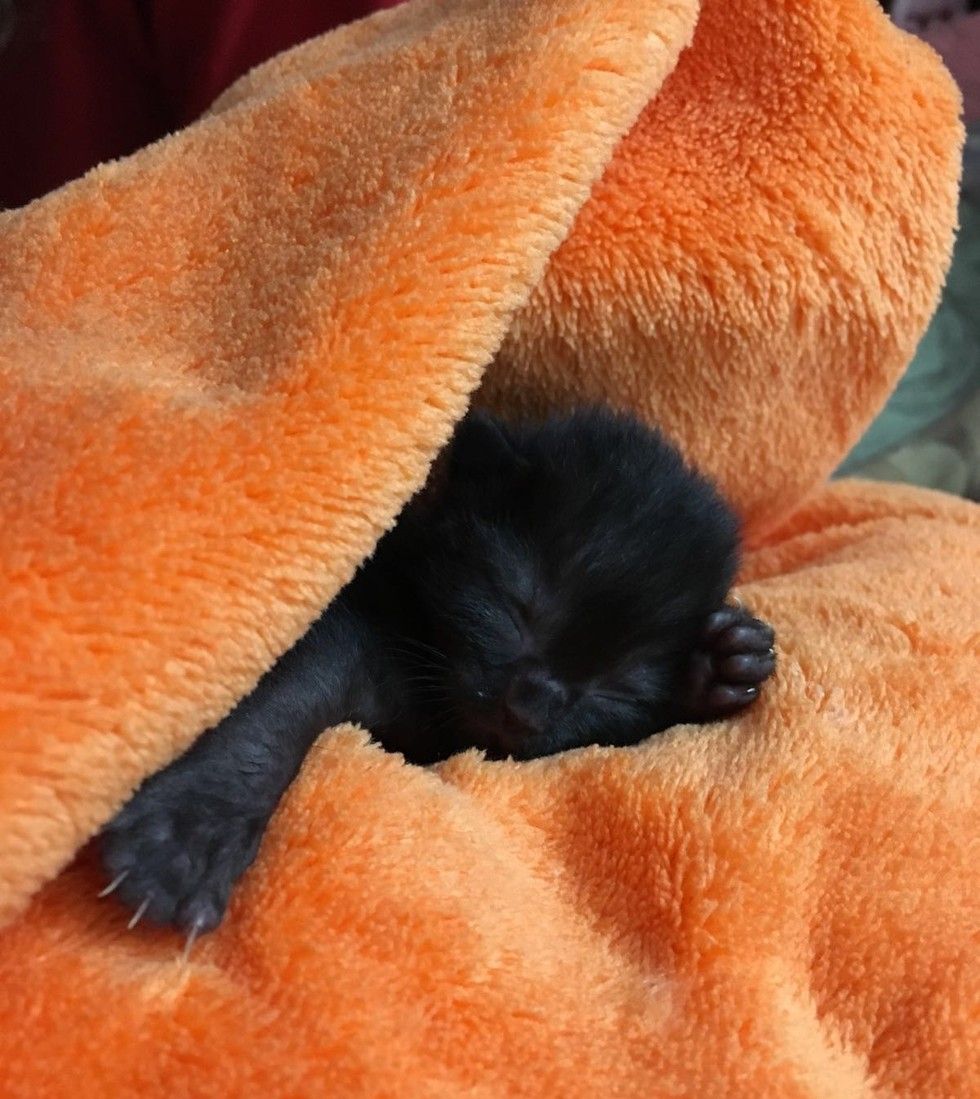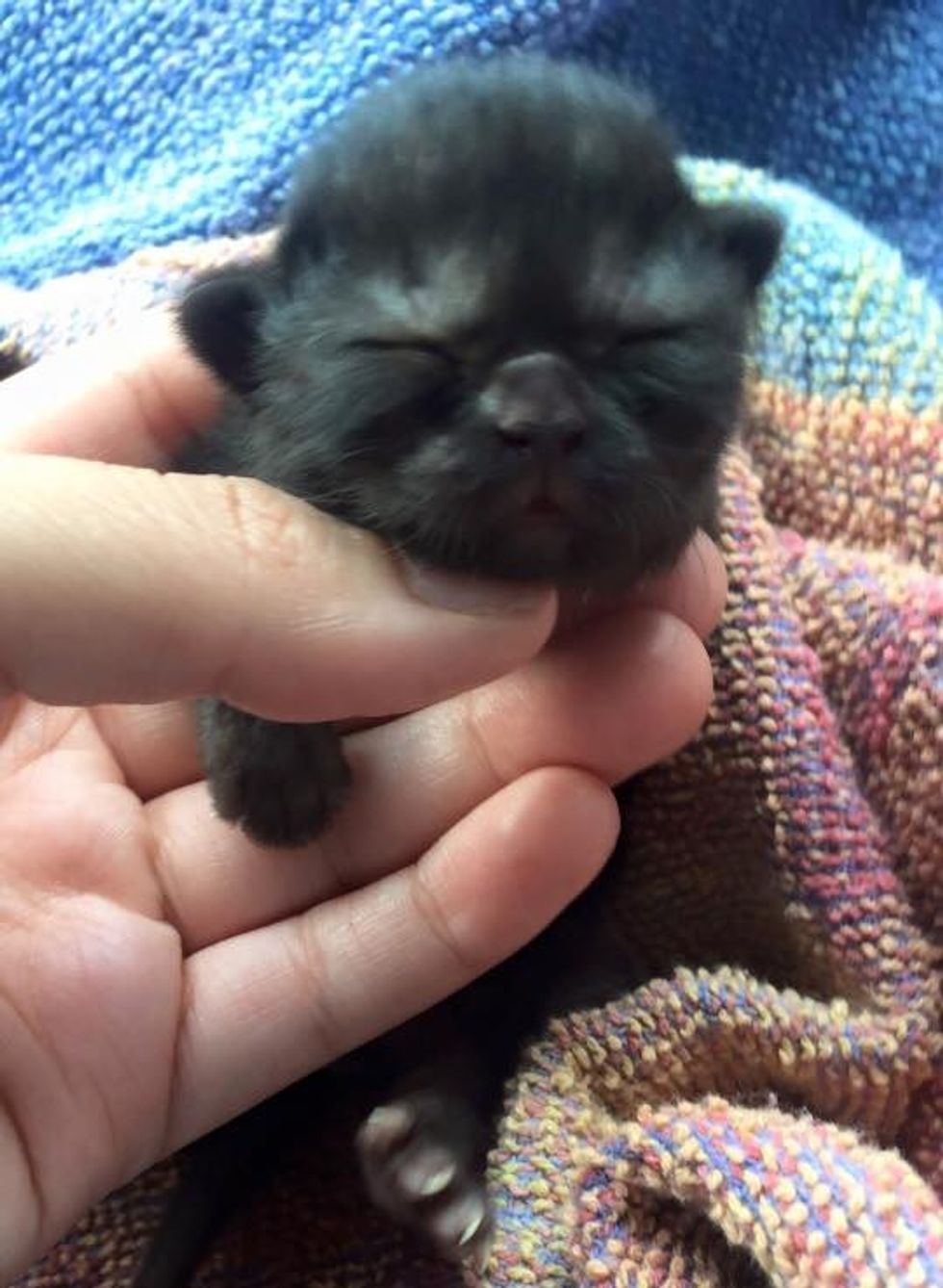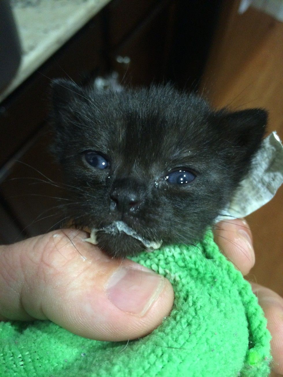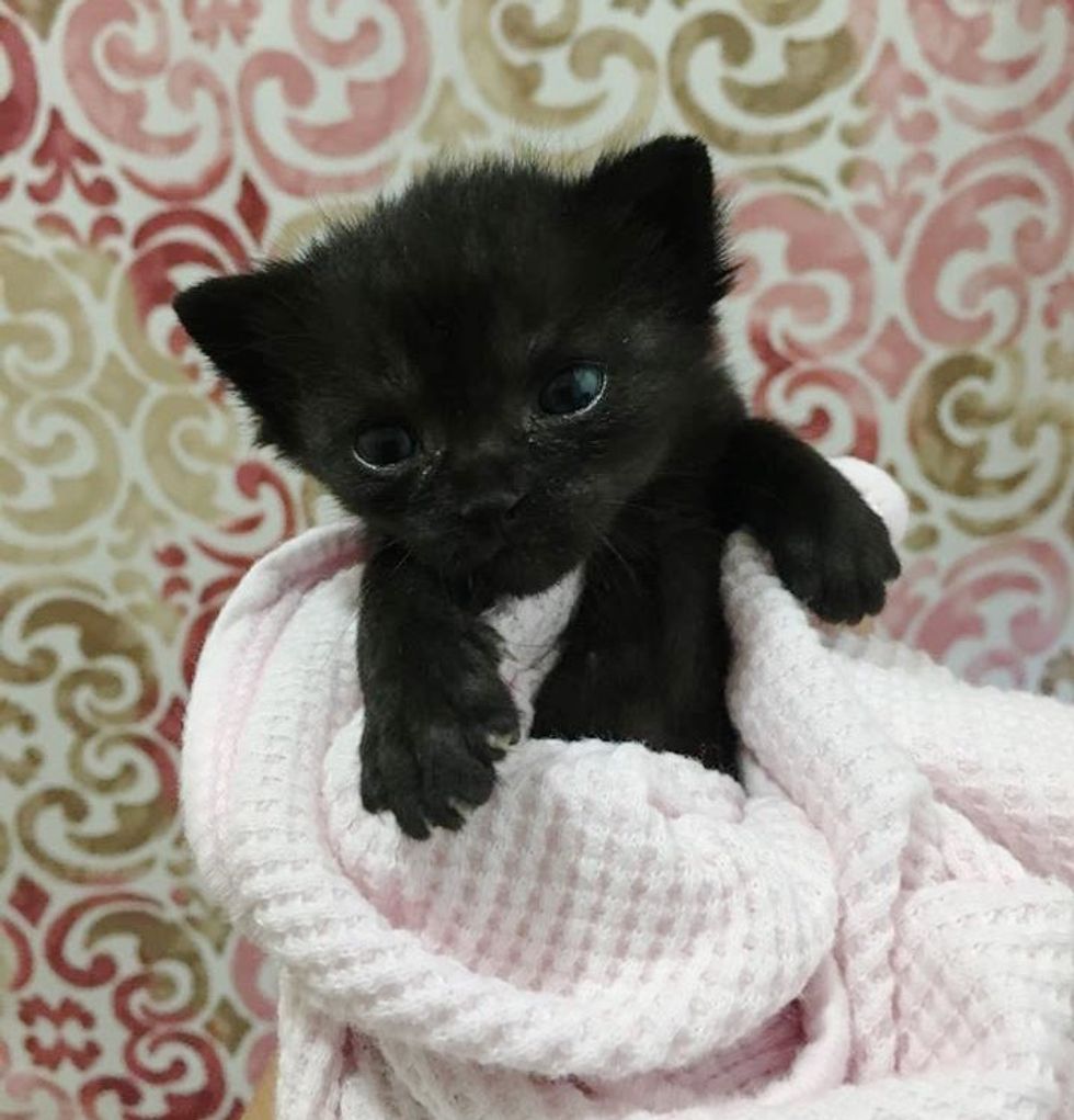 This tiny black kitty had so much fight in her. Her two siblings didn't make it, but she was determined to live.