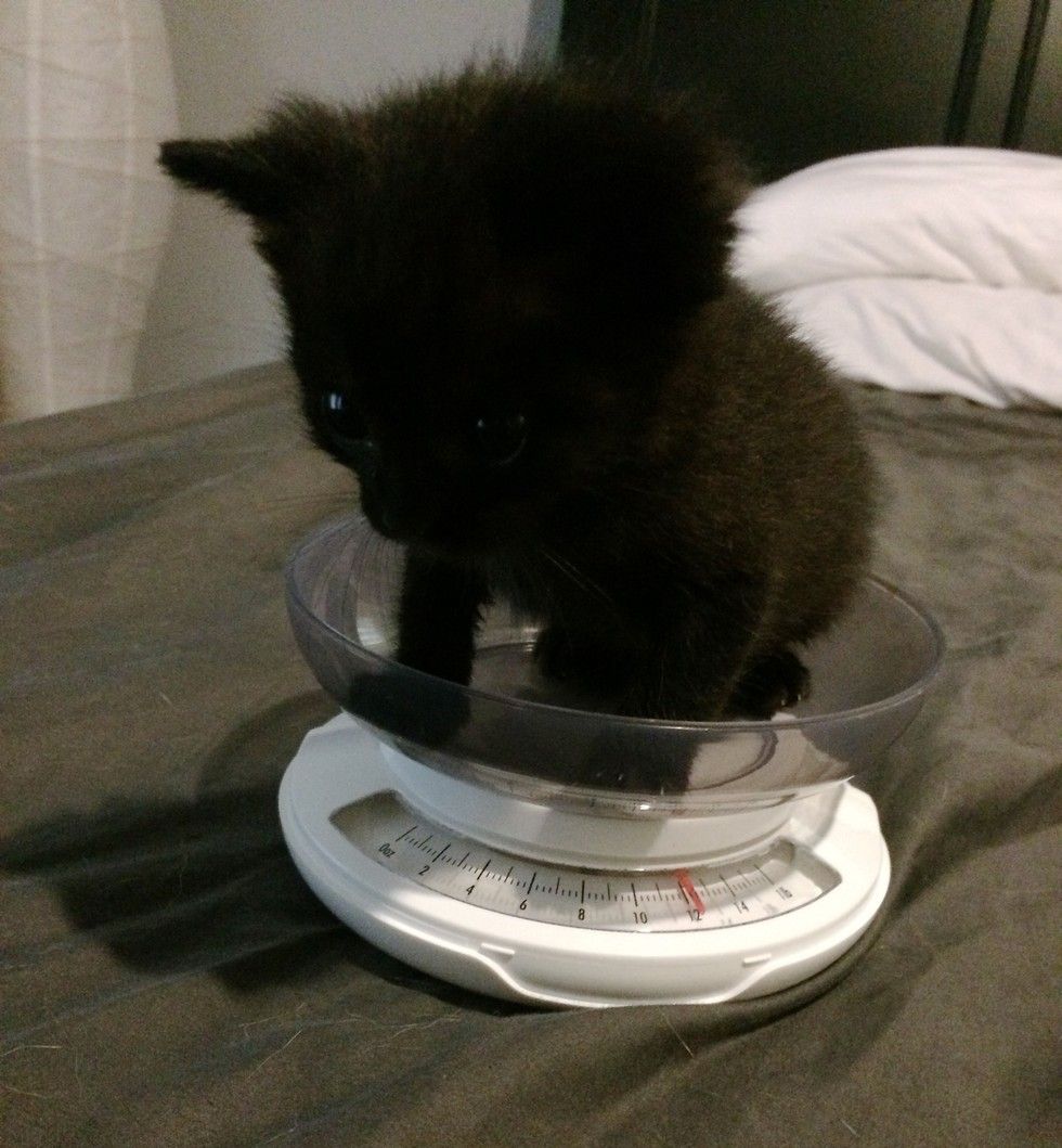 Weighing in for the first time. Her eyes hadn't opened yet.