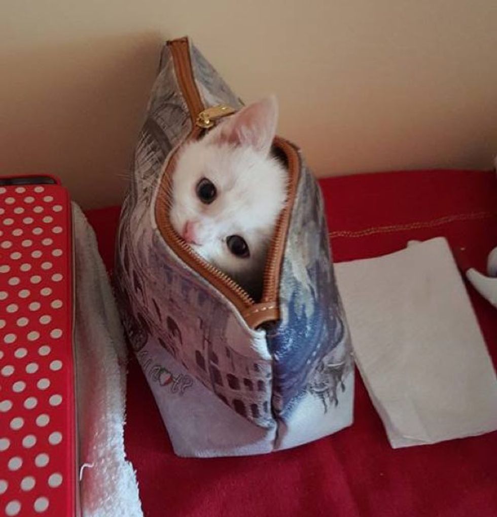 Willy loves to hide and play peekaboo from his mom's bags. He pokes his head out and retracts it back in at lightning speed so his mom can see him but can't catch him. :)