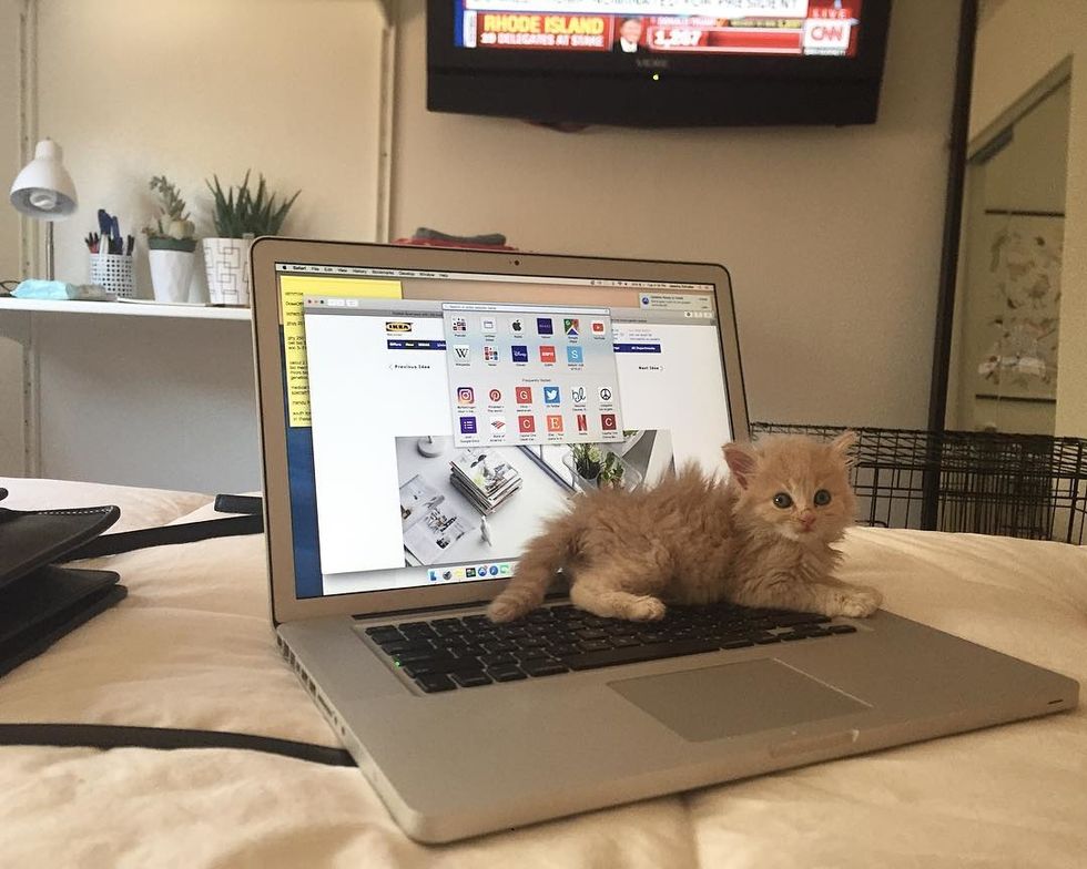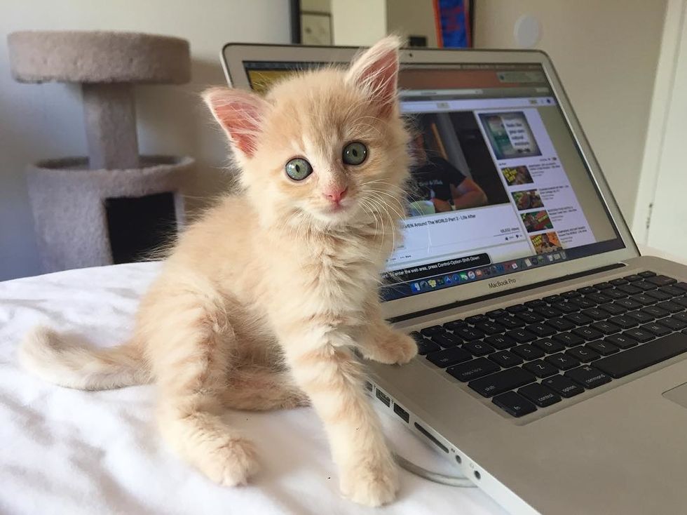 As a wee kitten, Cider had already figured out that computer keyboard is made for sitting.