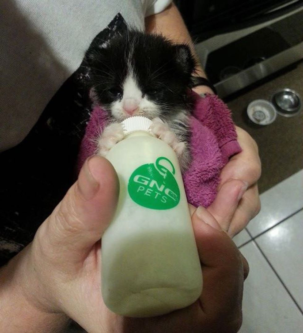 Carla the foster mom shared the story at Tuxie the cat via Facebook: "(At Petco), there was a little girl and her mom with this tiny baby they had for 2 hours. The mom had no idea the baby needs bottle feedings and was buying all kinds of older kitty stuff. She's a hairdresser and that means 10 hour days!"