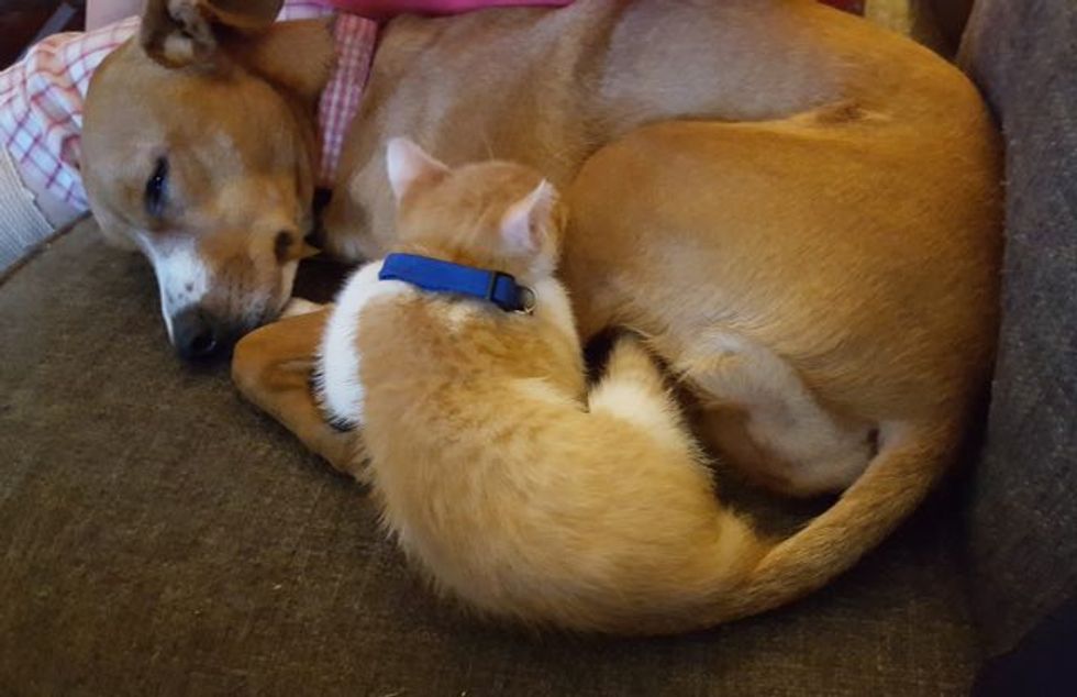 A tiny ginger kitten was meowing outside a house, lost and crying for help. He was skin and bones and all alone. A kind young woman heard the crying and started investigating.