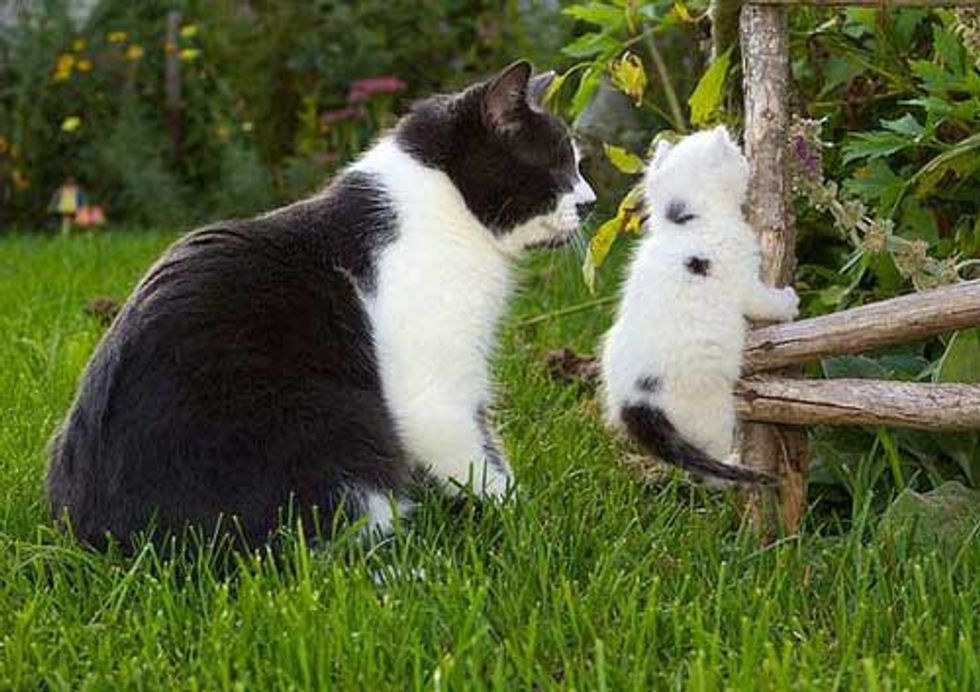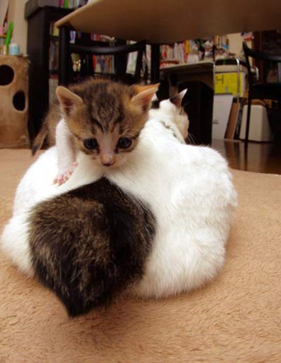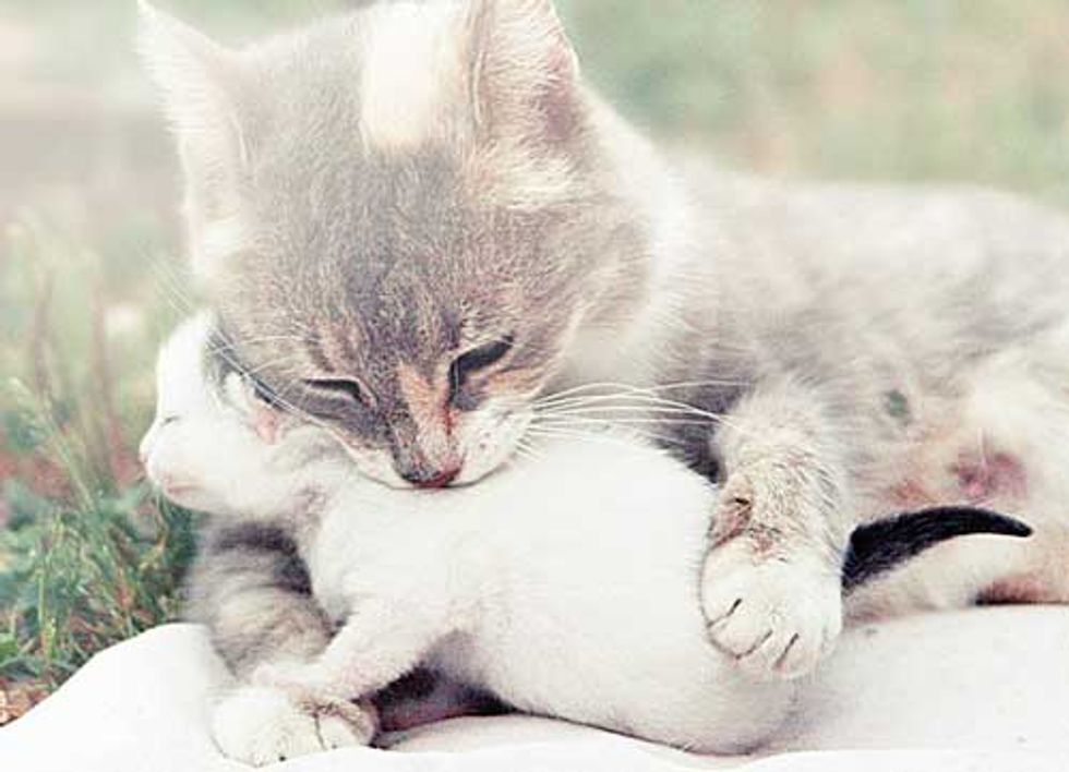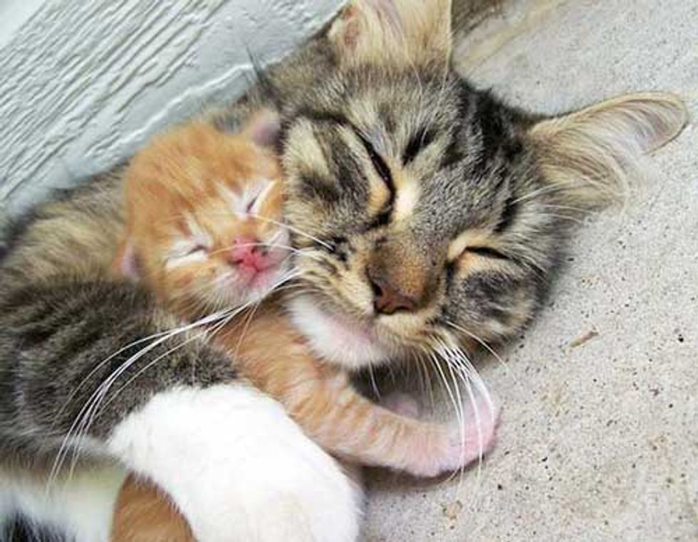 The cat mama cradles her little baby in her arms when they sleep and watches over her little one every step of the way as the kitten grows bigger and stronger. [click to see more pictures]