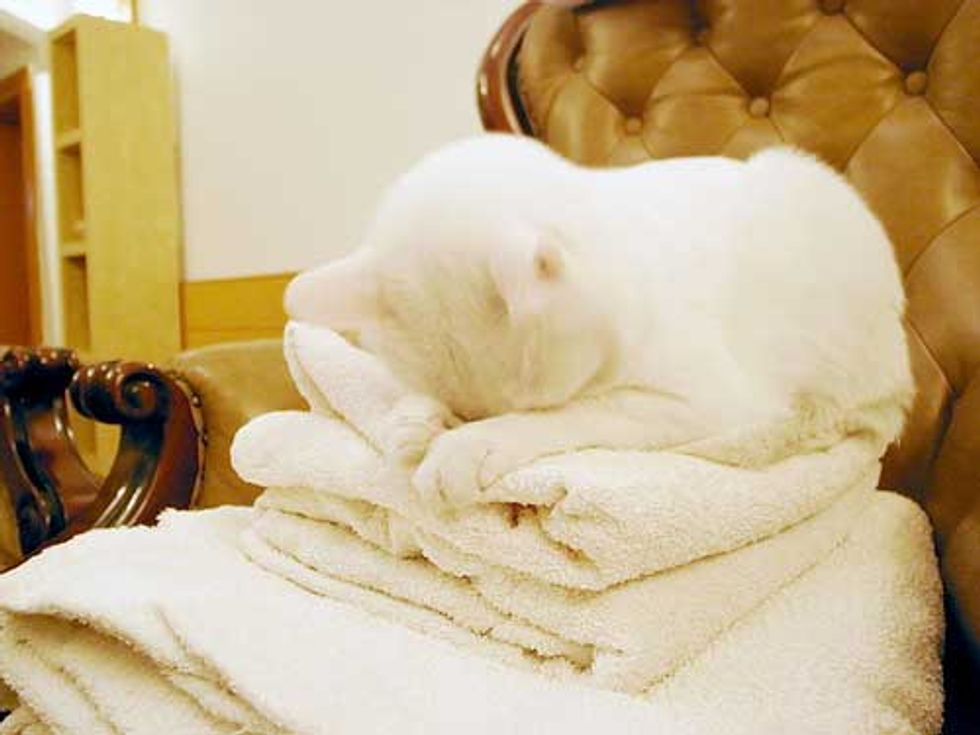 White the kitty is hard of hearing. She was born with blue and hazel eyes and an adorable purrsonality that everyone adores. White was adopted by Lu who uses her hands as the prime means of communication. By using body language, White knows... [click to see full story and more pictures]