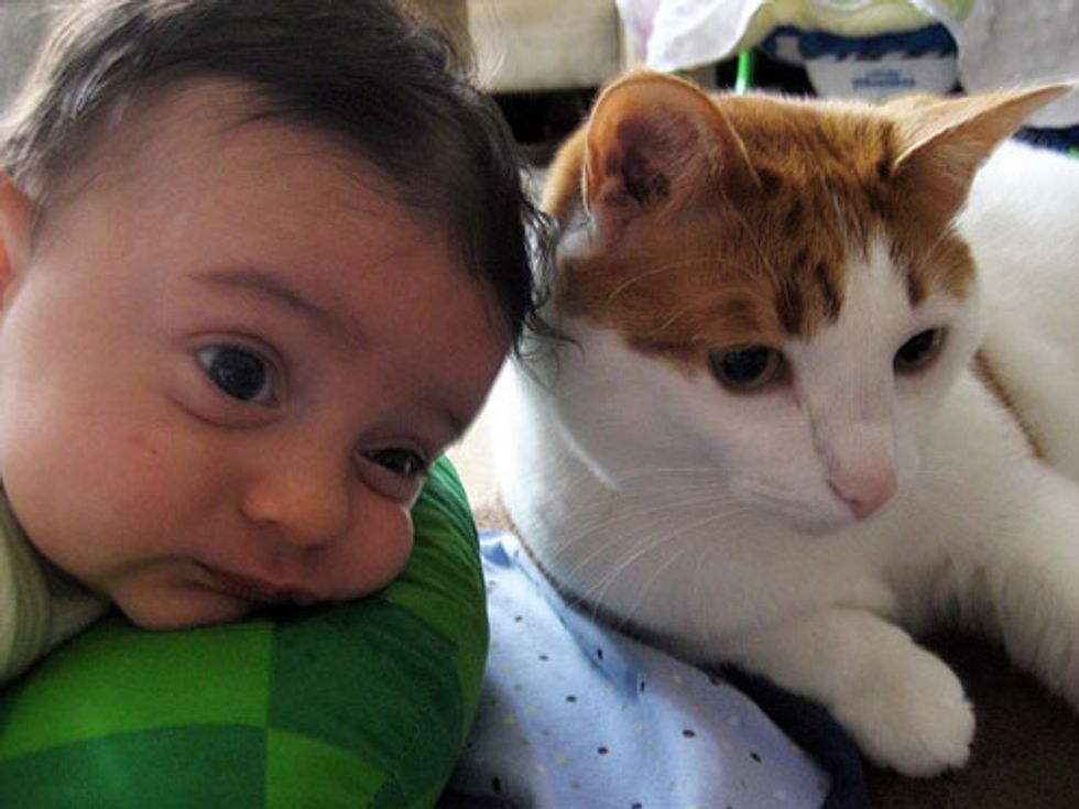 Maus the kitty met his best human buddy when he was born. Maus watched him grow and even taught him how to crawl. [click to see more pictures]
