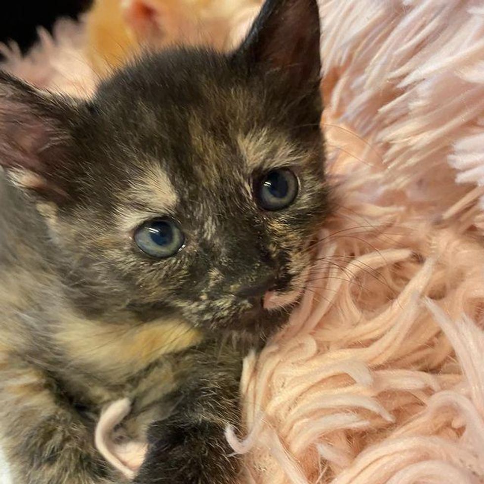 The sweet tortie would roll around blissfully in her nest after each feeding, waving her tiny paws and trying to get more pets and head scritches.