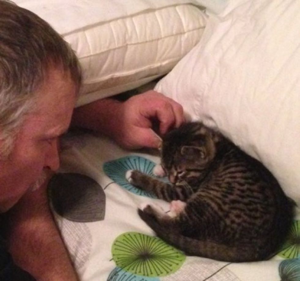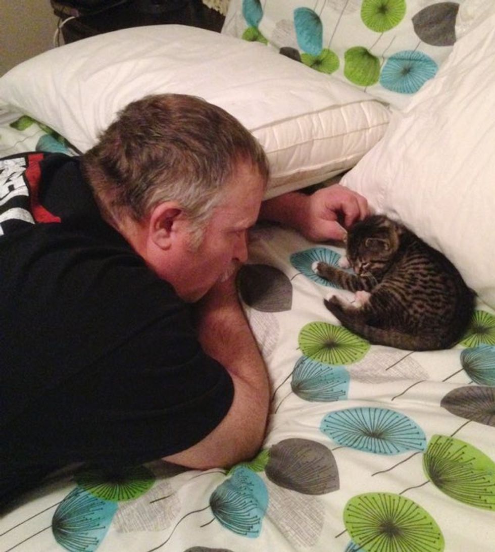 He's a tough guy with a soft spot for cats. This is him meeting his new adopted kitten.