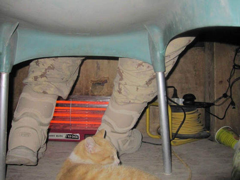 "The camp was a Canadian camp that stationed a company plus sized group." Tower Cheetah made his home there. "He definitely helped pass the time and always cuddled up to you at night. He also personally defended the tower and attacked a camel spider that was invading our tower," he added.