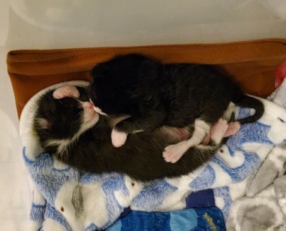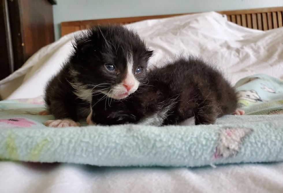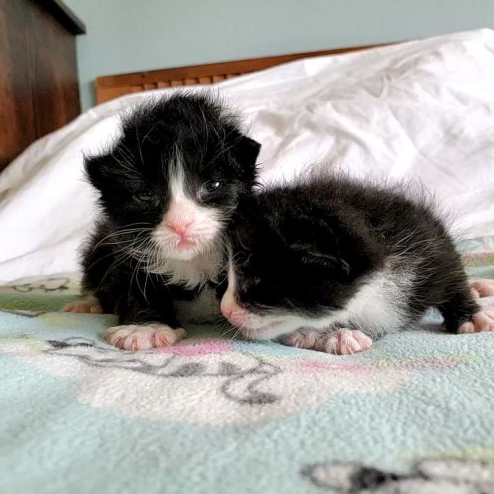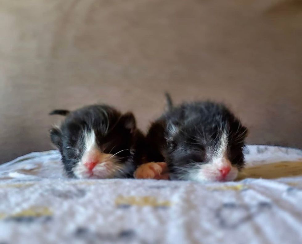 The kittens showed incredible strength and will to live at just a few days old. They crossed their arms when they napped and were always in good spirits as long as they had each other.