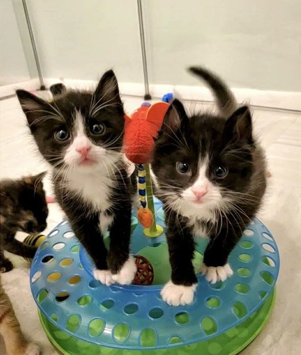 The tuxedo brothers are completely inseparable. They do everything together and copy each other as they grow.