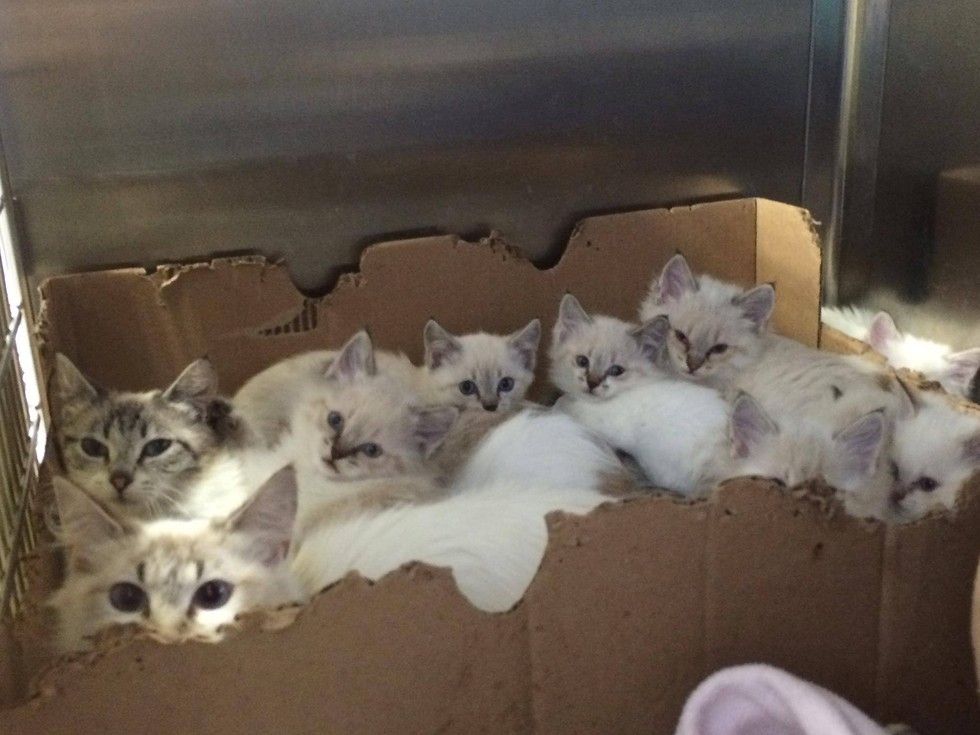 Two cat mamas and their seven kittens were saved found in a mobile home park. The older mama had been living as a stray for a few years.