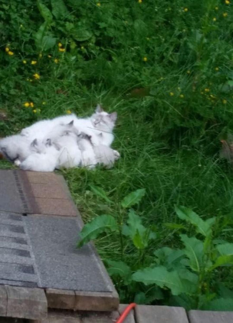 "The older mama had been hanging around a mobile home park for the last several years," Tasha Bukovnik of VOKRA told Love Meow.